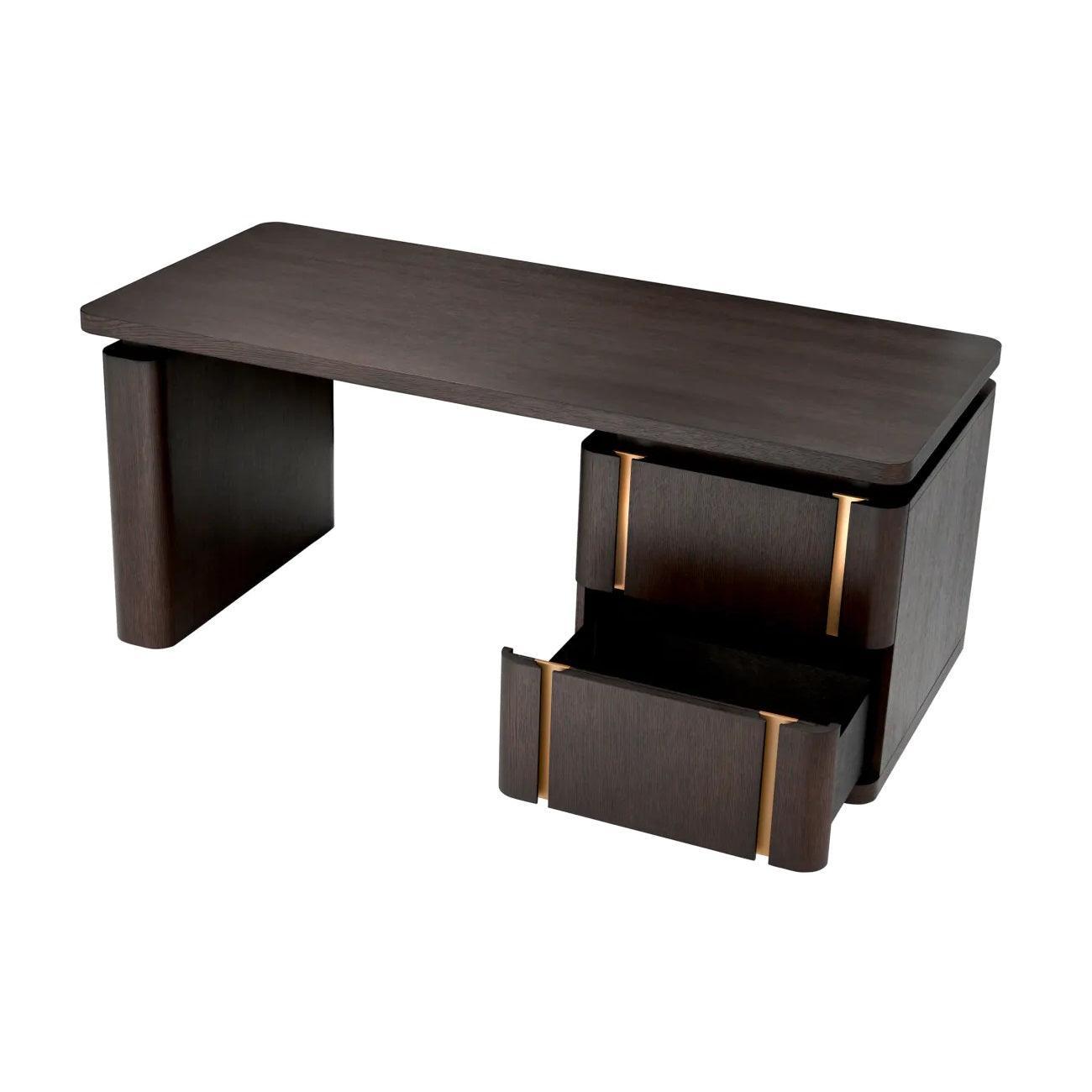 Desk Modesto is a design symphony in which every chord plays harmony with the rest. His veneer from Mokka's oak reminds of the natural beautiful trees, adding heat and authenticity to the interior. The accents from brushed brass not only emphasize its elegance, but also add a note of luxury and sophistication.
