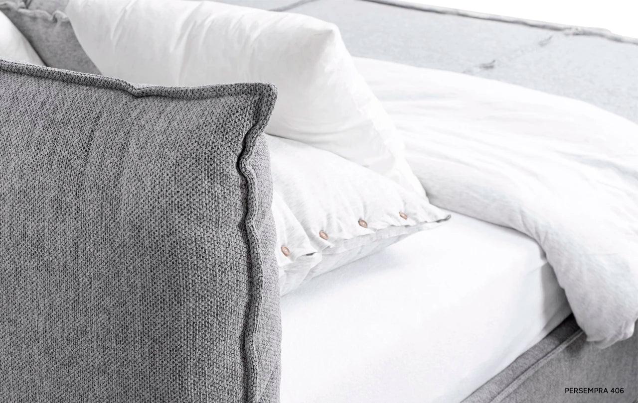 Beige bed Molia is a symphony of convenience and functionality, where a wide headboard includes a mattress, providing not only excellent support for the body, but also exceptional sleep comfort. The softness of upholstery and the delicacy of fabrics available in the Rosanero offer emphasize the sophisticated character of this bed, making it not only a piece of furniture, but a real work of art.
