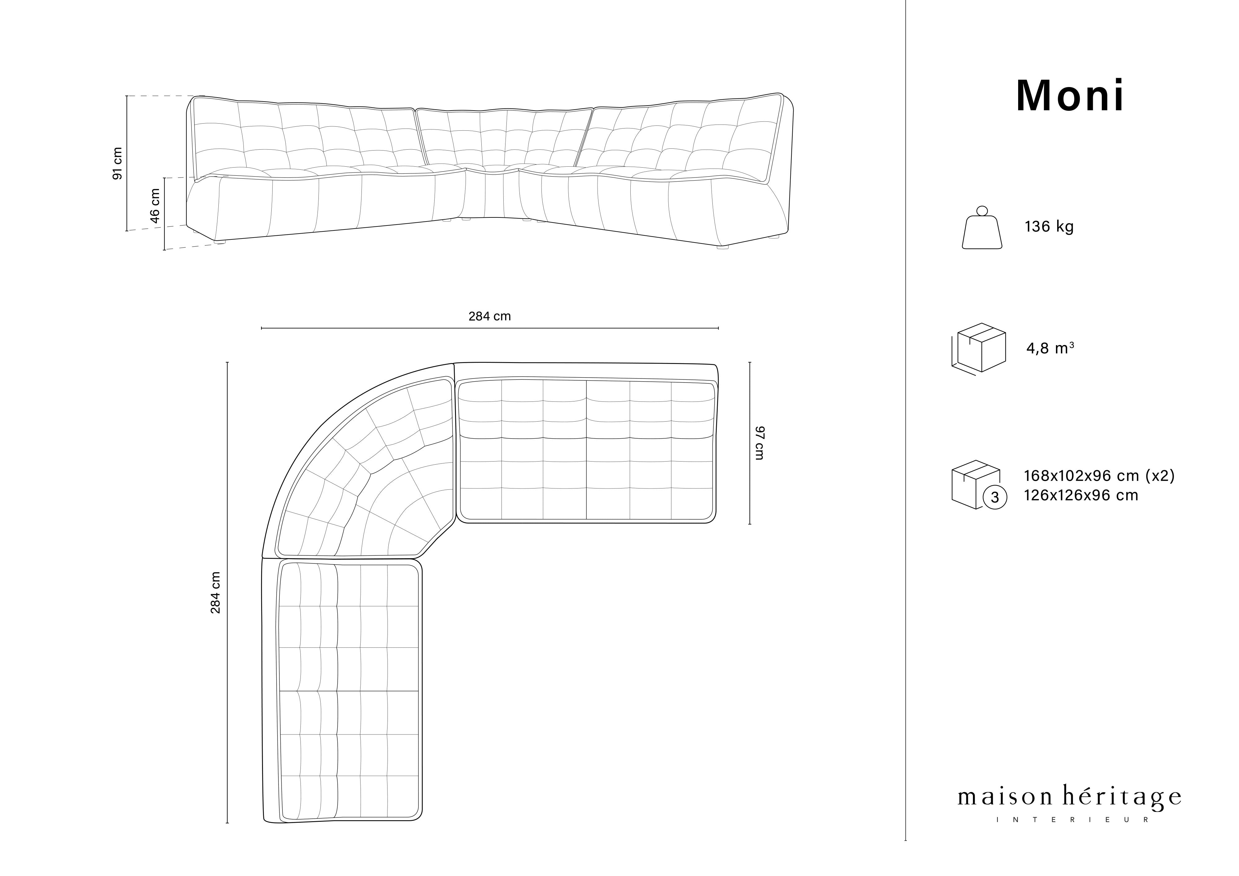 Upholstery made of natural cowhide is gently embossed, making its texture very pleasant to the touch. Ergonomic shapes provide free support for the entire back. The Moni collection includes several combinations of sofas and corner sofas, as well as elements such as armchairs, chaise longues, and poufs.