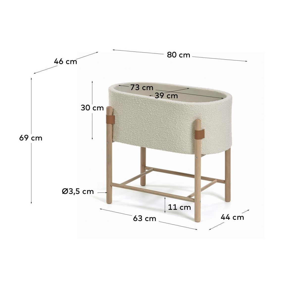 Discover the exceptional Moses basket Adara, which will become the perfect companion for your baby's first months of life. Our exclusive crib has been designed with comfort, safety, and aesthetics in mind. Made from durable solid beech wood, it is an incredibly sturdy and eco-friendly solution.