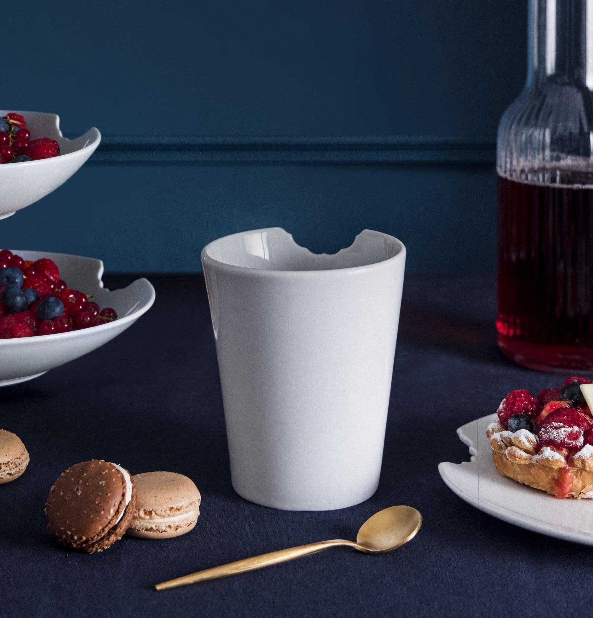 Mug With Bite is a significant development of our concept of serving drinks with an element encouraging to talk. This new comrade in various sizes is perfect as a drinking dish, which emphasizes the variety of drinks and gives them a unique charm.
