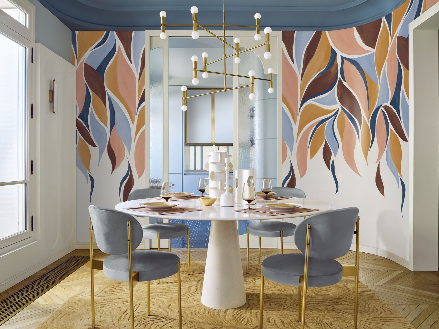 Brown GRACILIS Leaf Plant Motif Mural with Green