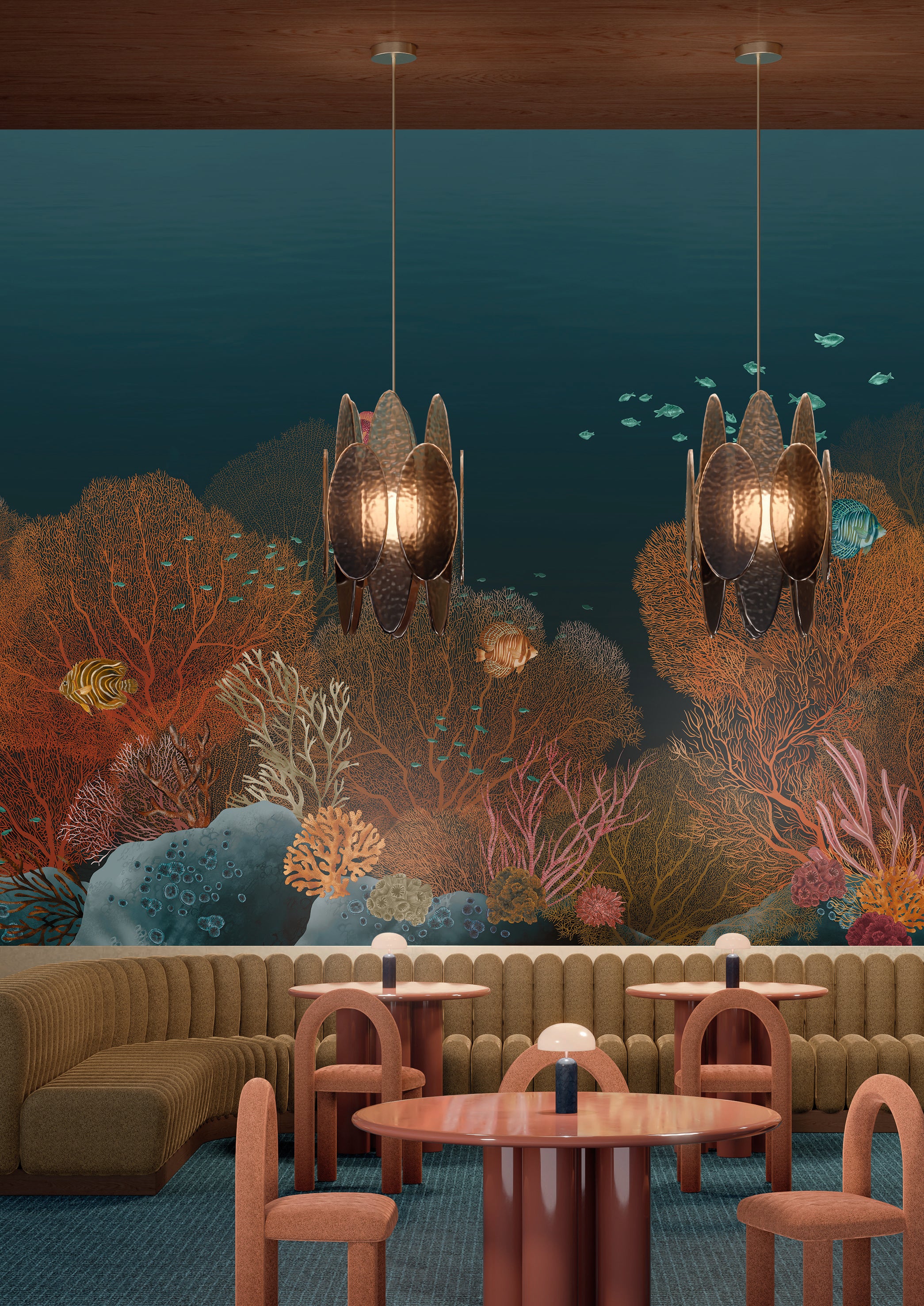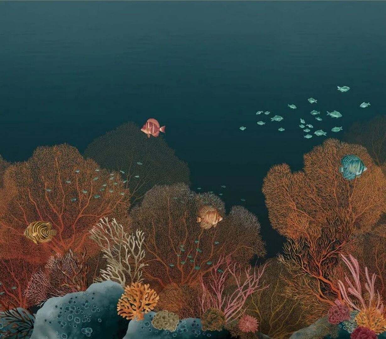 Mural Polynesia is an invitation to immerse yourself in the tranquil, underwater world of Polynesia. The design features crystal-clear waters through which majestic mantas glide, while colorful fish dance among coral formations like in an underwater garden. The mural creates an atmosphere of harmony and tranquility in the interior, drawing the eye into the depths of the marine landscape. It is a decoration that acts like a window to another world – perfect for the living room, bedroom, office, or wellness space.