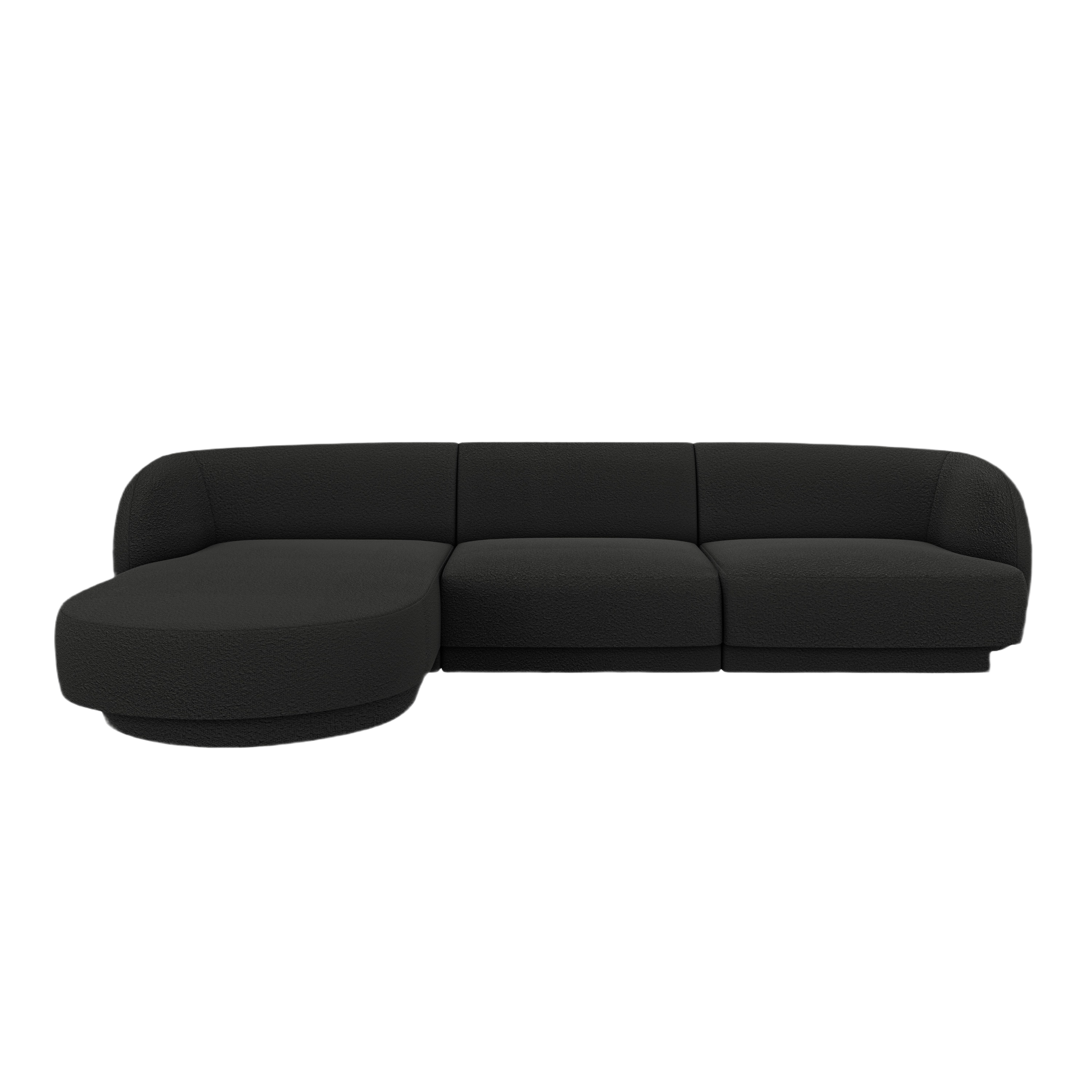 Left-sided corner sofa for 4 people Miley is an elegant proposal for those who appreciate modern design and everyday comfort. Its characteristic, rounded shapes and smoothly profiled lines add softness and a refined character to the interior. The low backrest transitioning into subtle armrests creates a harmonious and cohesive appearance while providing comfortable support in any position. With spacious seats filled with resilient foam, the corner sofa invites relaxation and quality time together, making it the perfect spot for both solo unwinding and social gatherings.