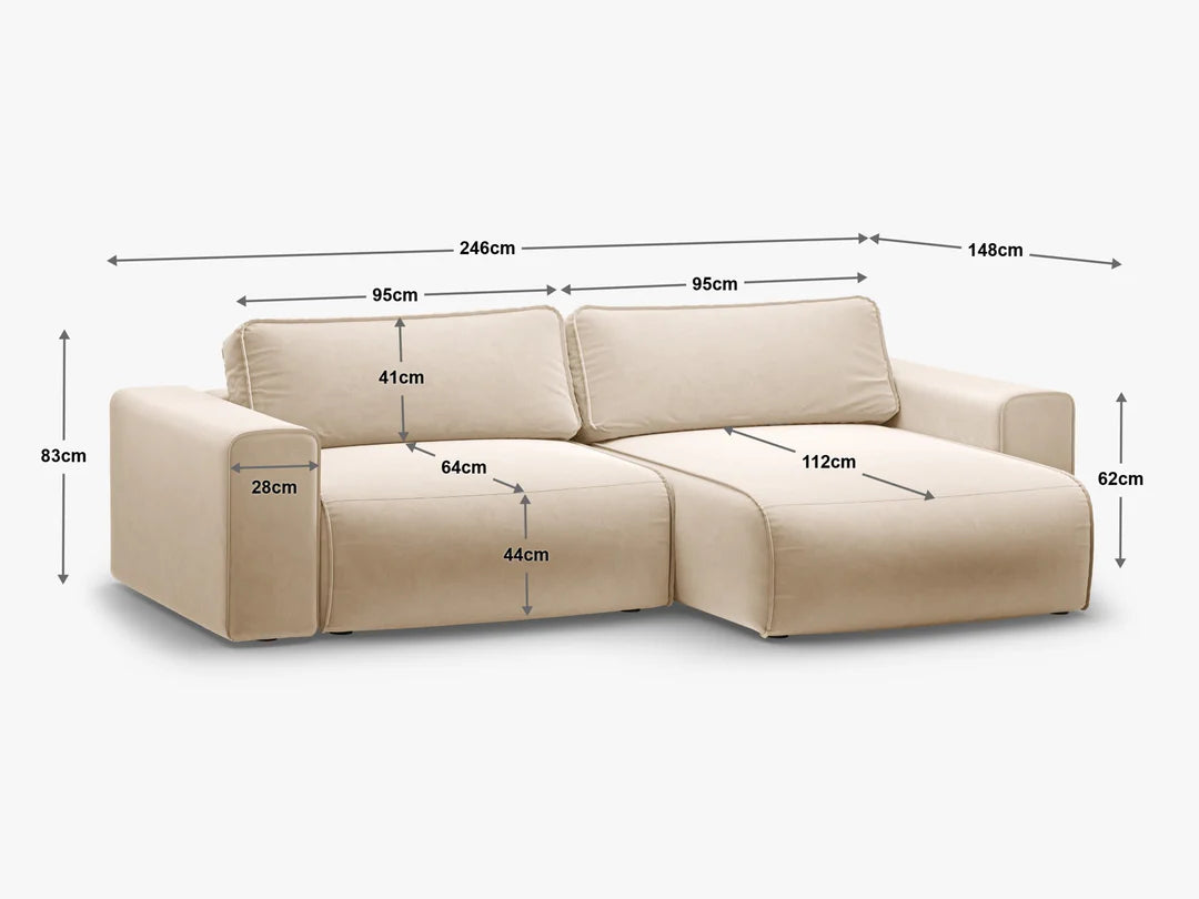 Left-facing velvet corner sofa for 3 people with sleeping function VICTOR pink