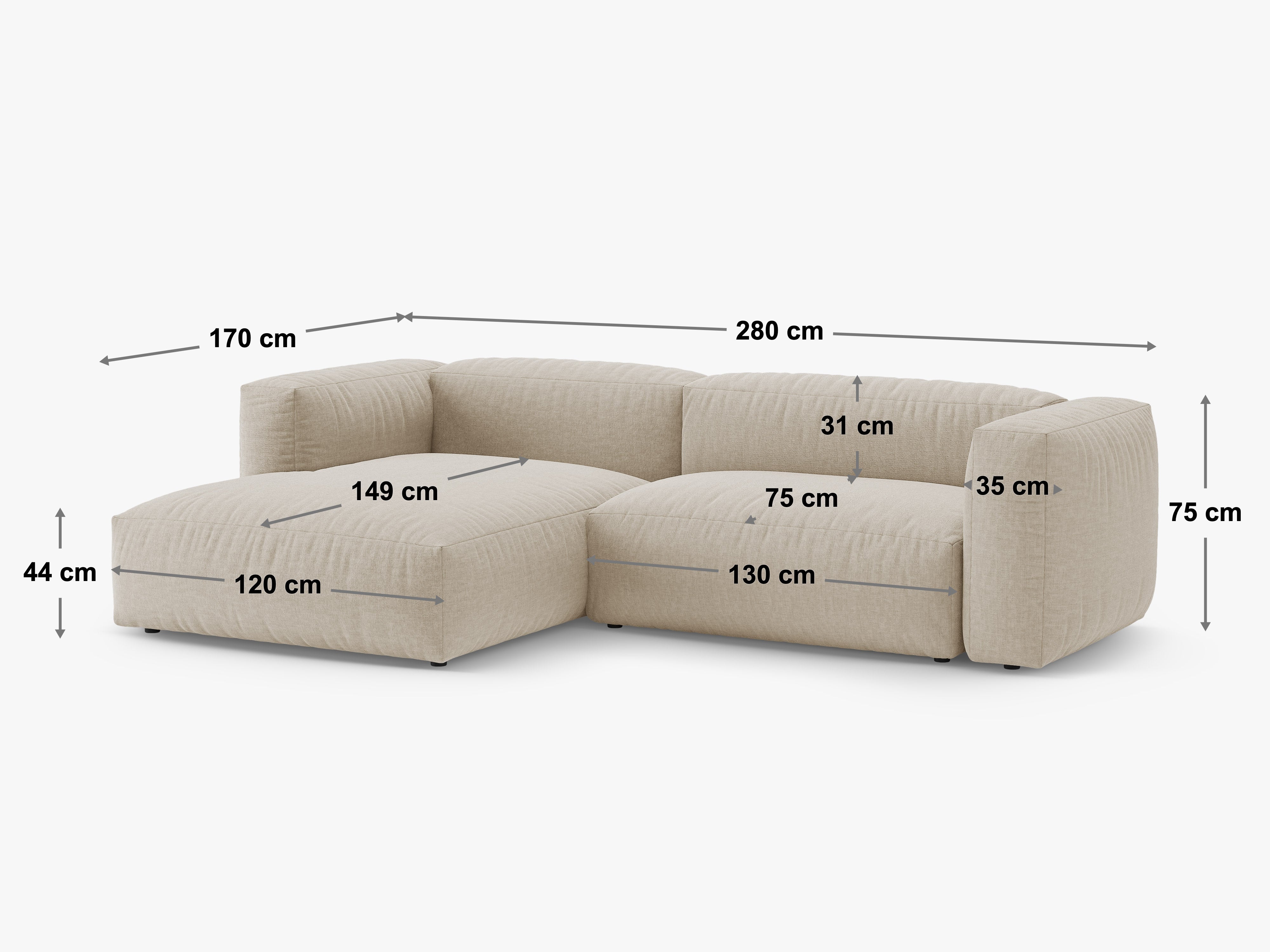 The functional design based on a puma-type mechanism allows for quick and convenient unfolding - the seat slides out, while the other part automatically lifts, creating a flat sleeping surface. The absence of a storage compartment simplifies the furniture's construction and highlights its light, harmonious form. The filling made of two types of foam and zigzag springs ensures proper support and durability during everyday use.