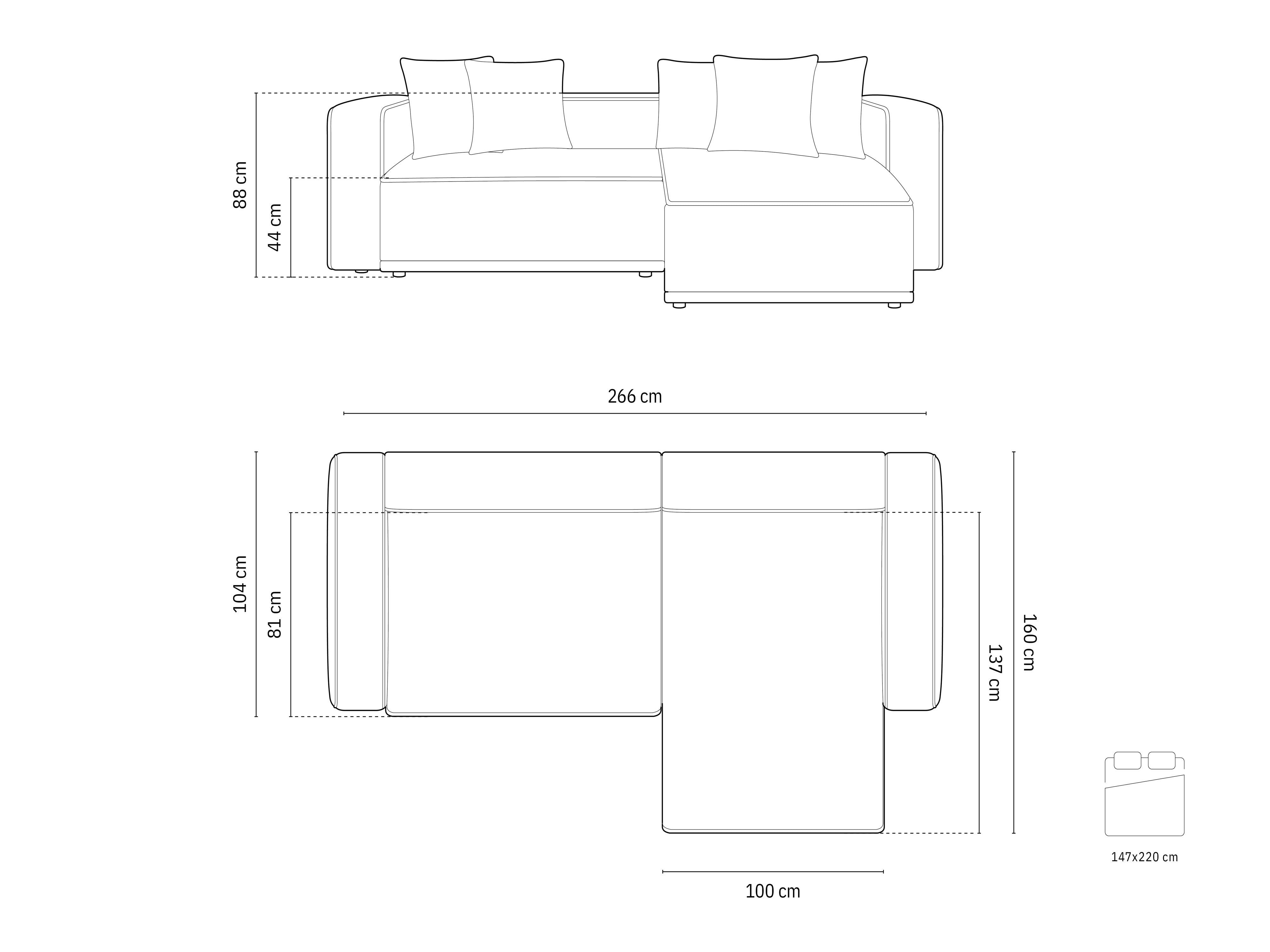 Right-sided corner sofa bed RIBES beige corduroy