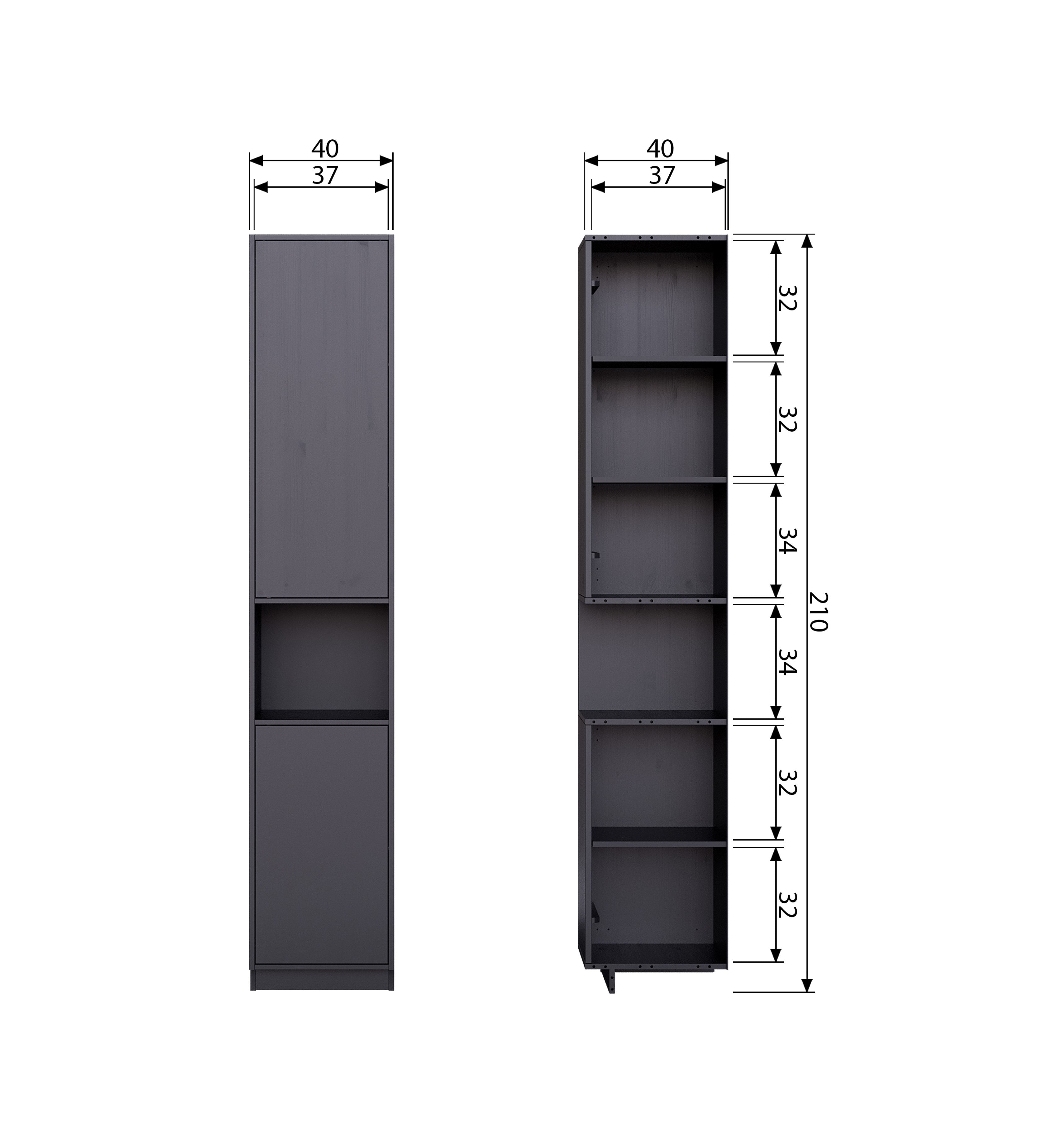 Shelf Fianca is made of certified pine wood and finished in deep black. This unique piece of furniture combines open and closed compartments, creating a stylish whole while offering plenty of space to store the most beautiful accessories.