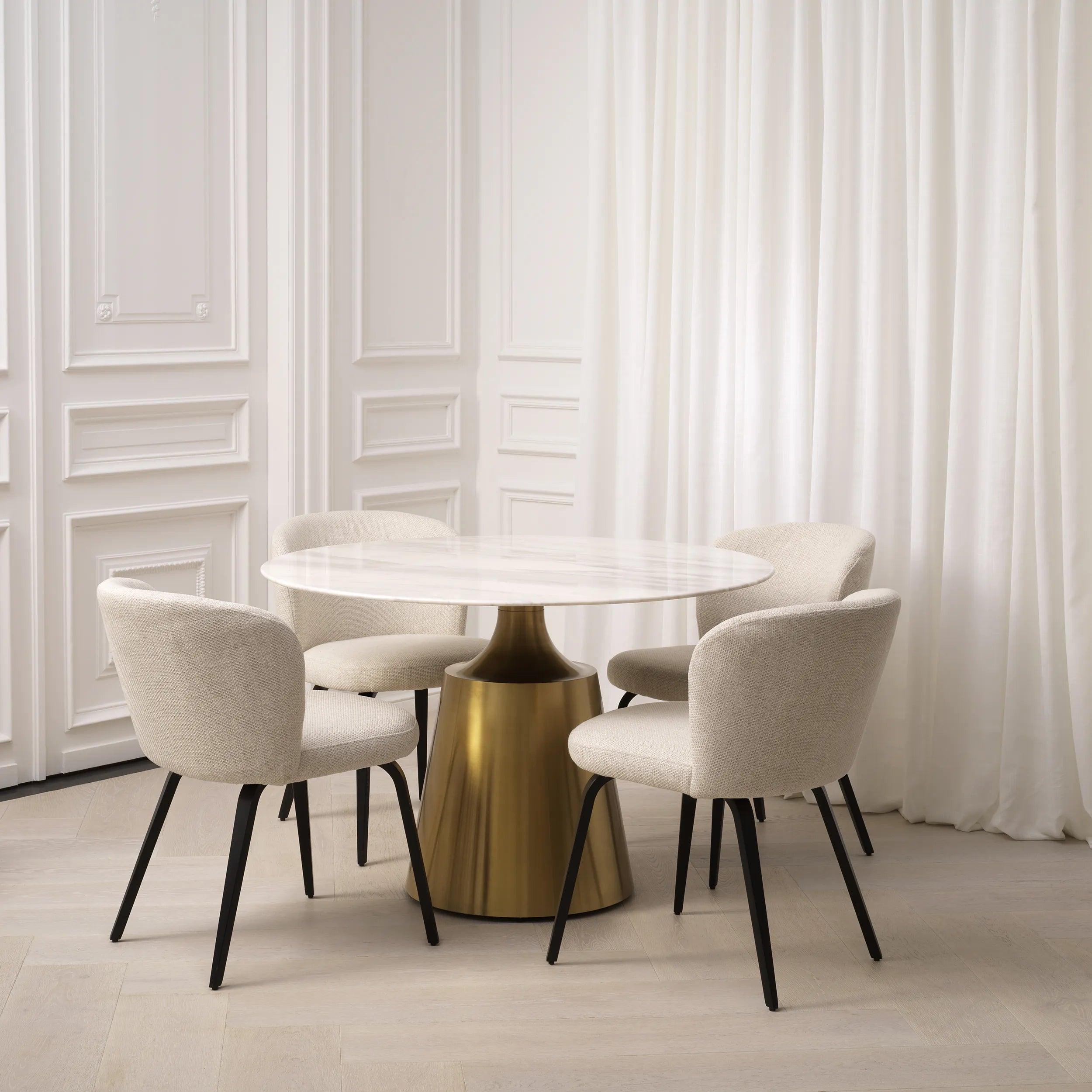 The table base, made of shiny brass, adds a sophisticated character. Her tapering shape contrasts with the massiveness of the countertop, creating a harmonious and balanced connection. Delicate lines and minimalist design make it table Nathan becomes a timeless element of decoration of any interior.