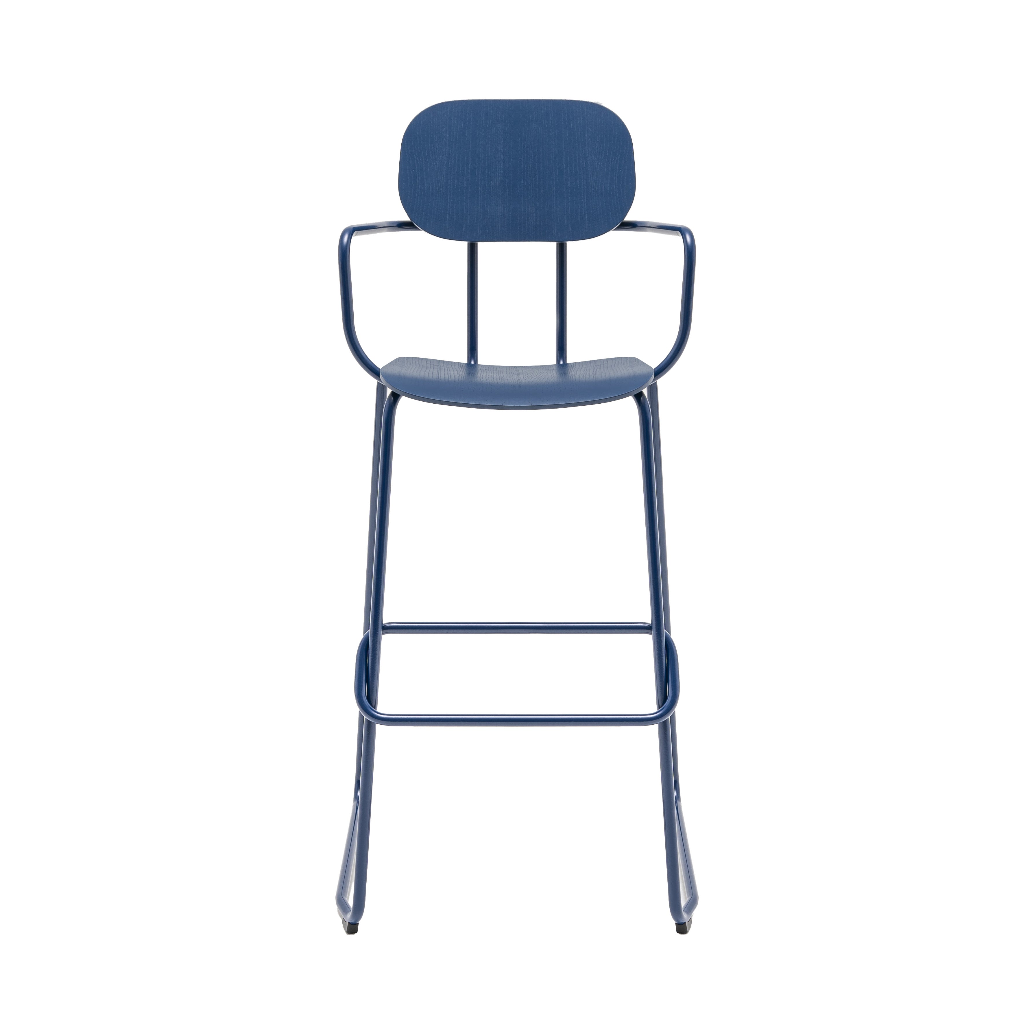 Hoker New School, designed by Studio Form US with Love, is a modern reinterpretation of a traditional school chair. This stool is perfect for office canops, bars, cafes and kitchens with a high top. Available in two heights, it allows you to match various countertops. It is distinguished by an integrated footrest and optional armrests, which increases the comfort of use.