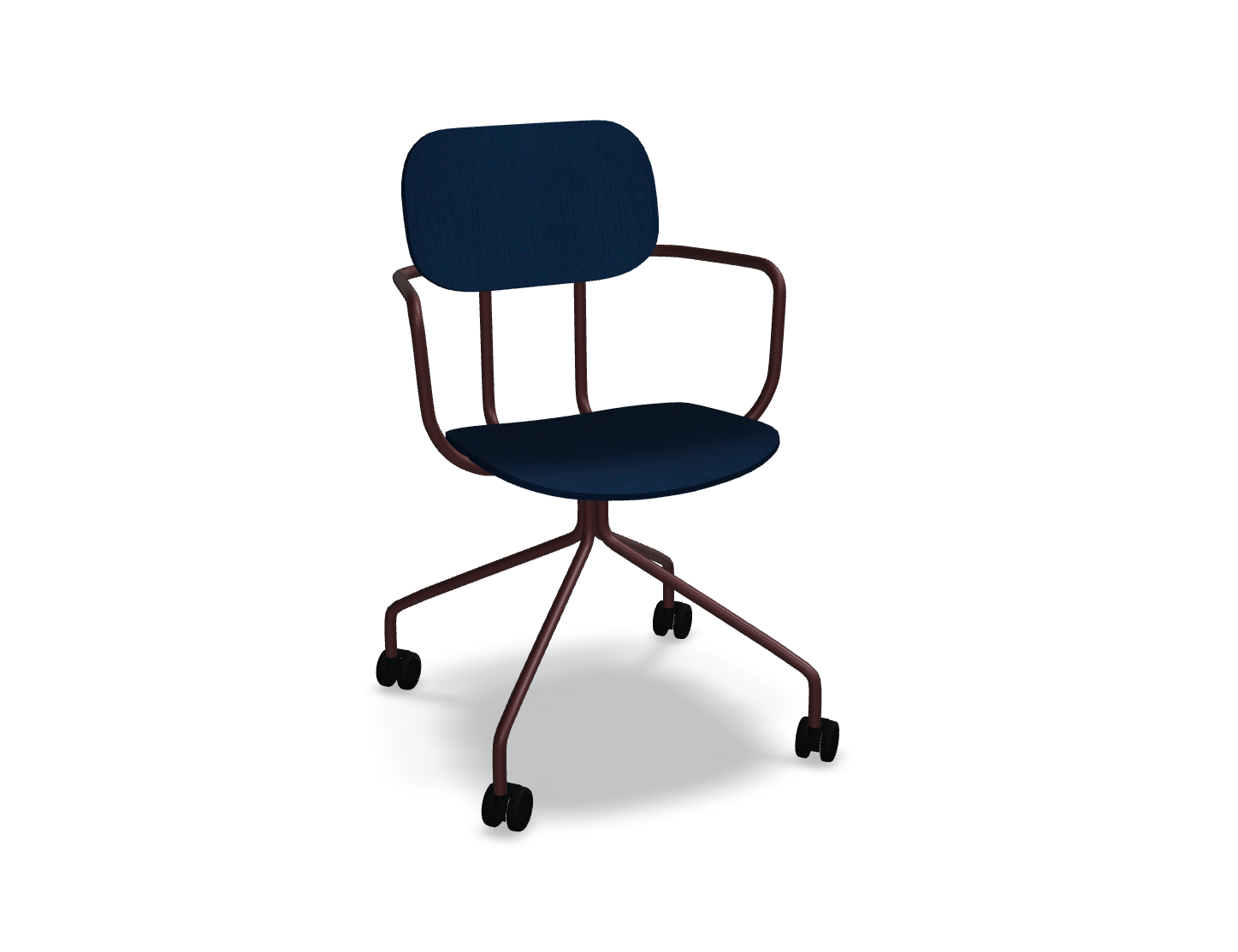 Office chair New School, inspired by the classic form of a school chair, offers many configurations ideal for different office zones. The version with a four -pointed base on wheels increases functionality, making it easier to move at the desk and adjust the position to current needs. The possibility of personalizing finishes and optional armrests makes this chair a versatile solution that will be perfect for both offices and educational and workshops.