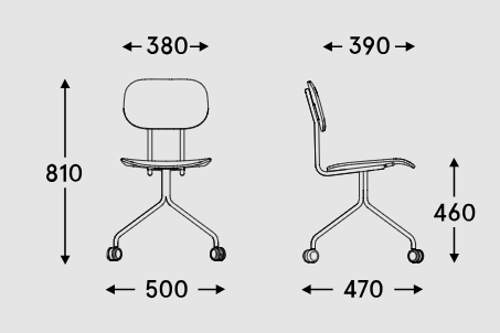Chair It is available with an easy -to -care plywood seat, which makes them ideal for space, where users often change. The height of the seat - 460 mm - tailored to standard tables, provides comfort, and the mobile base on wheels allows free movement and adaptation of the position to the individual needs of the user.