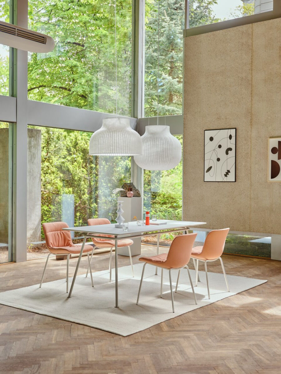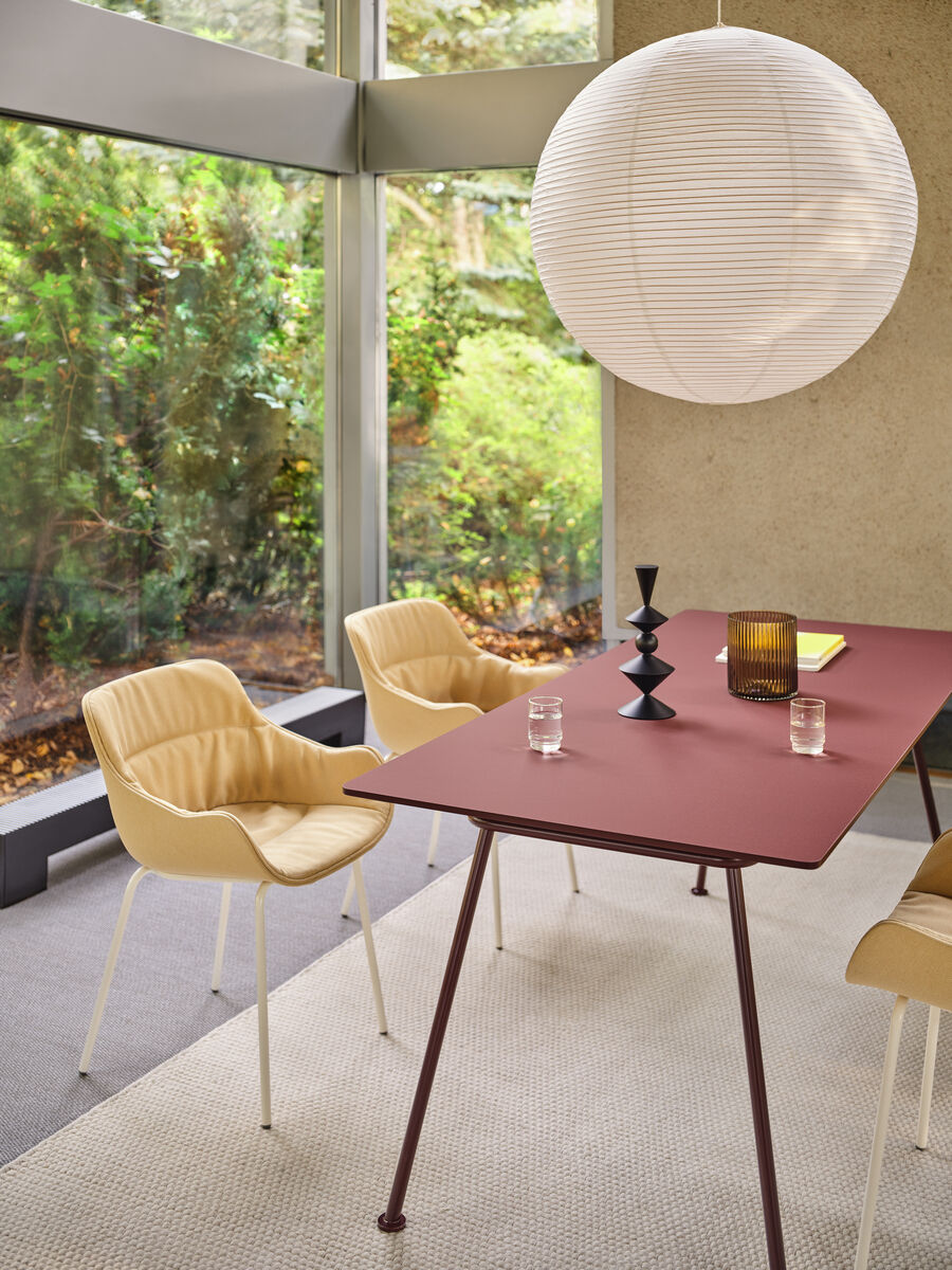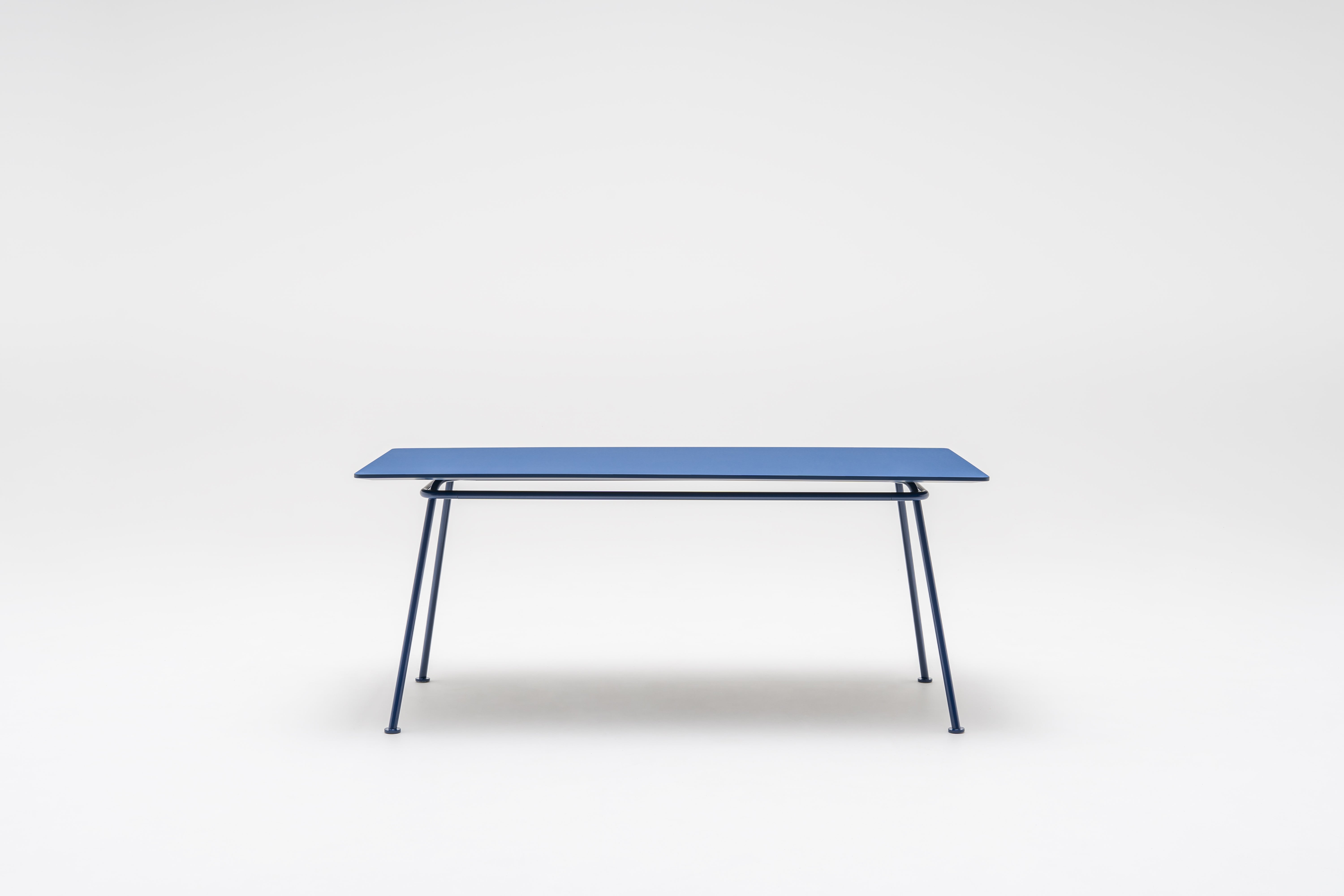 Rectangular table New School is a complement to the New School collection collection, designed by Studio Form US with Love. Designers used a characteristic skeleton of bent tubes, adding tops of various shapes and dimensions to it. Simple form and intense table colors allow you to match different spaces. Table This one is maximally practical and versatile, it works as a desk, conference table or a restaurant table.