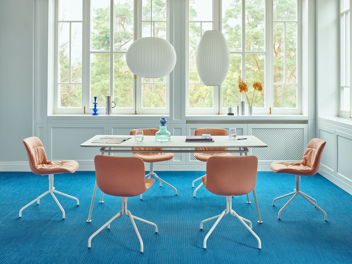 The 750 mm high top is made of easy to care MDF, covered with linoleum. The varnished rollers are matched to the frame, which emphasizes the modern nature of the project. The table is available in a selected range of intense colors, which makes it an ideal solution for office, hotel and gastronomic interiors.