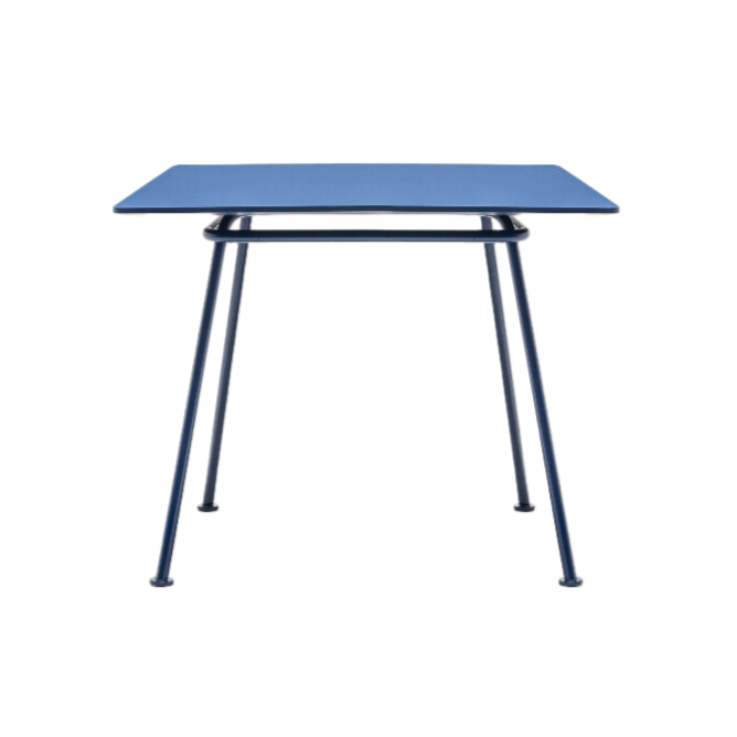 Square table New School is a complement to the New School collection collection, designed by Studio Form US with Love. Designers used a characteristic skeleton of bent tubes, adding tops of various shapes and dimensions to it. Simple form and intense table colors allow you to match different spaces. This table is maximally practical and versatile, it works as a desk, conference table or a restaurant table.