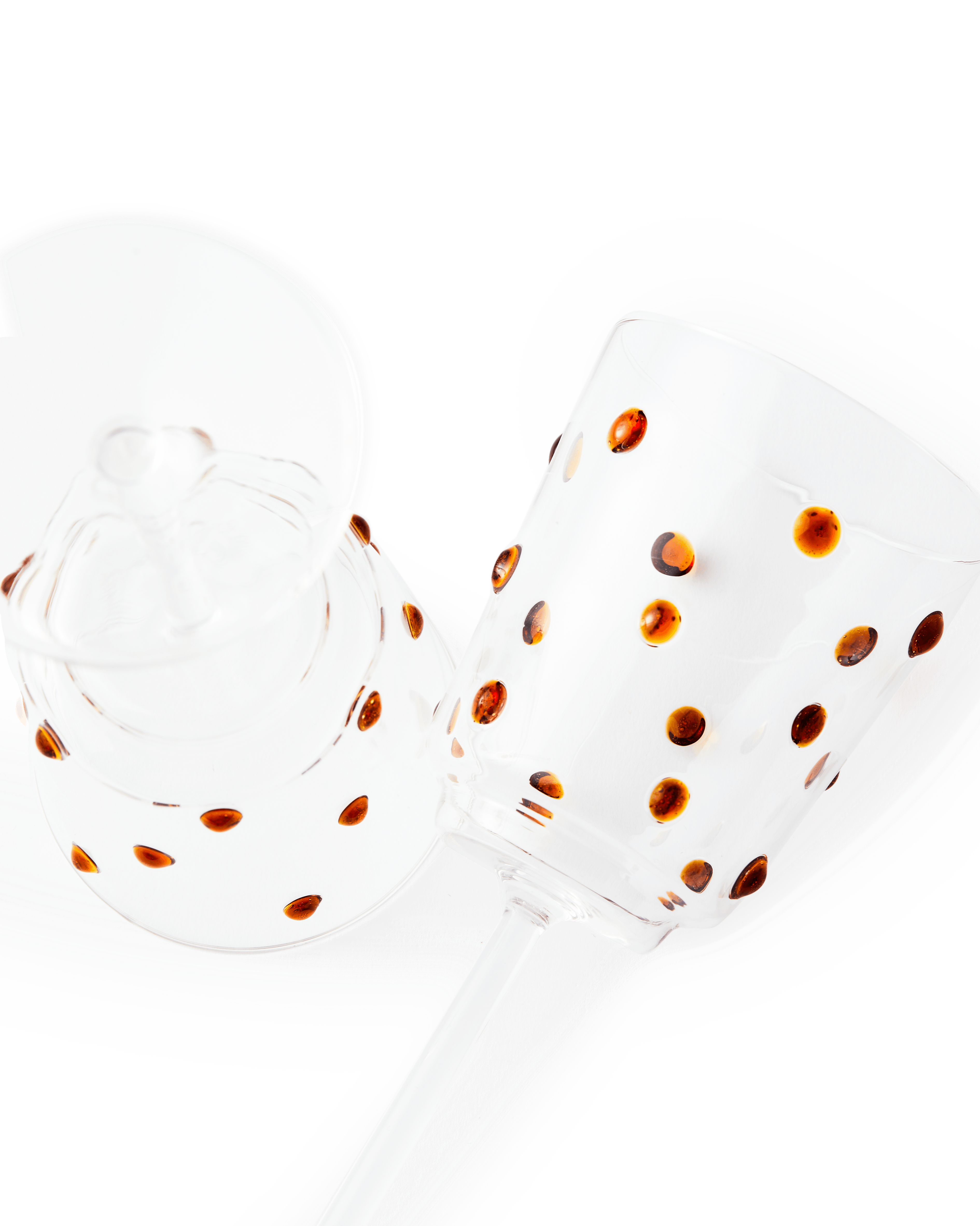 Nob Glasses Set with brown dots is a true masterpiece of craftsmanship and functionality. These glasses are incredibly versatile, temperature-resistant, and suitable for both hot and cold beverages. A unique feature of their design is the hand-placed brown dots, which give them a distinctive character and make each glass unique. This combination of artisan care and excellent functionality makes the Nob glasses set an indispensable product.