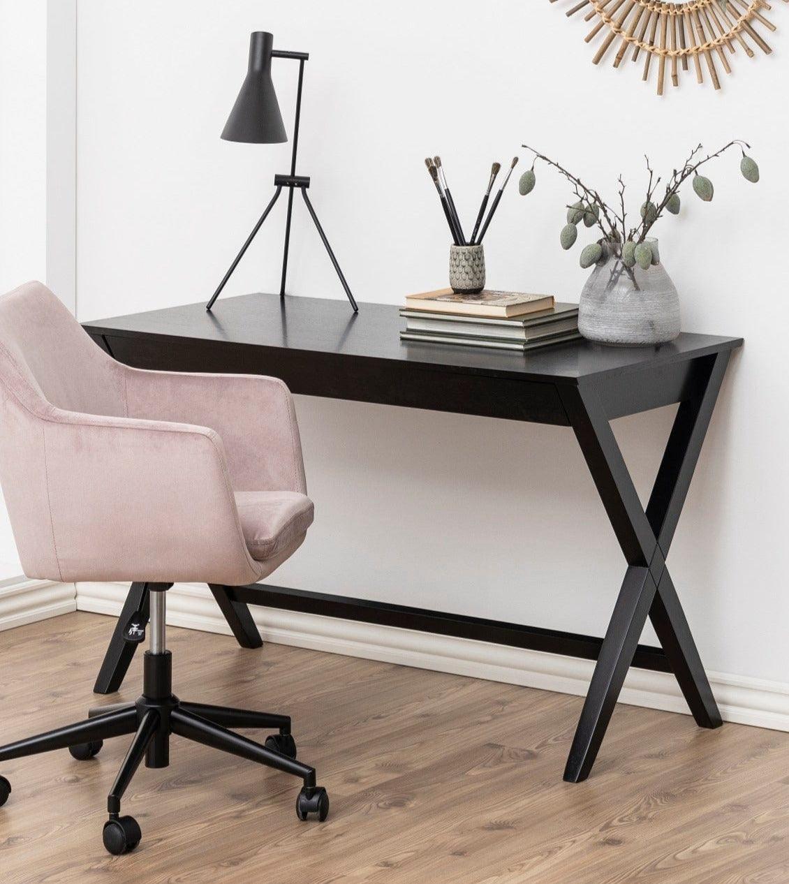 Office Chair Milas in a shade of dusty pink with a black base is a classic that you cannot miss in your home office. Its elegant shape, unique design, and incredibly comfortable finish make it hard to imagine a better office chair than the Milas model.