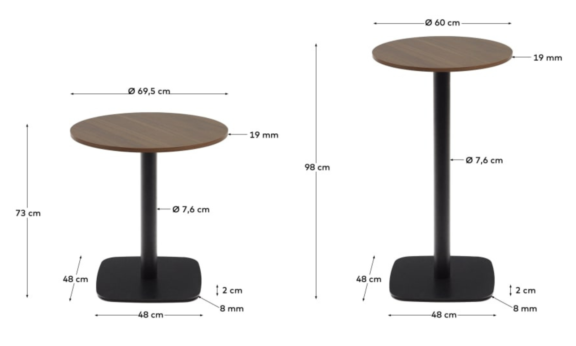 The combination of the nut square top with a black metal base gives Dina the stylish look that suits both modern and classic interiors, giving them a unique character.