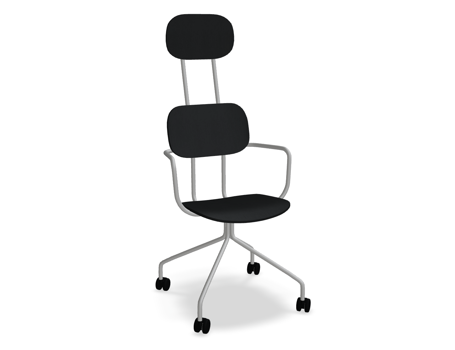 Office chair with headrest New School, designed by Studio Form US with Love, attracts attention with a modern form of double support. This version provides support for the whole back, and the headrest additionally increases the comfort of use. Thanks to the wheels and armrests, the New School chair is not only comfortable, but also functional, allowing for freedom of movement and a comfortable position, even during a longer sitting.