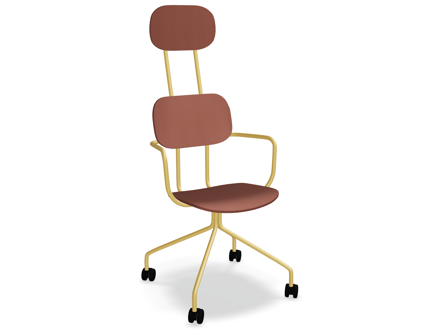 Office chair with headrest New School, designed by Studio Form US with Love, attracts attention with a modern form of double support. This version provides support for the whole back, and the headrest additionally increases the comfort of use. Thanks to the wheels and armrests, the New School chair is not only comfortable, but also functional, allowing for freedom of movement and a comfortable position, even during a longer sitting.