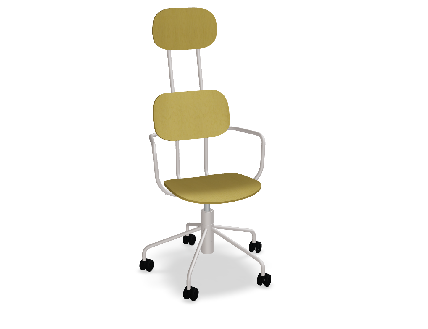 Office chair with headrest New school with adjustable height provides comfortable support for the user's whole back. Equipped with a cylinder and wheels, it enables full freedom of movement, which makes them an ideal choice for offices and educational facilities. A durable seat and plywood support are easy to care for, so they will work in places with intensive use.