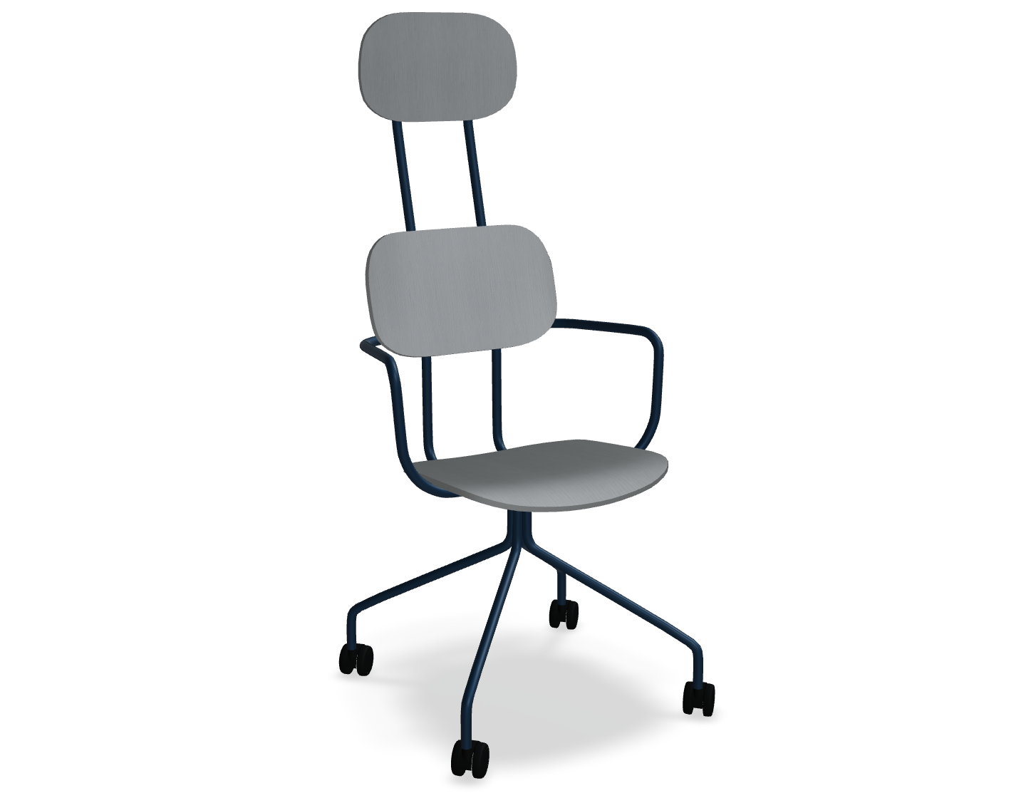 Office chair with headrest New School, designed by Studio Form US with Love, attracts attention with a modern form of double support. This version provides support for the whole back, and the headrest additionally increases the comfort of use. Thanks to the wheels and armrests, the New School chair is not only comfortable, but also functional, allowing for freedom of movement and a comfortable position, even during a longer sitting.