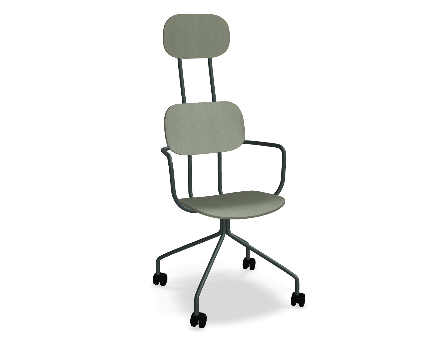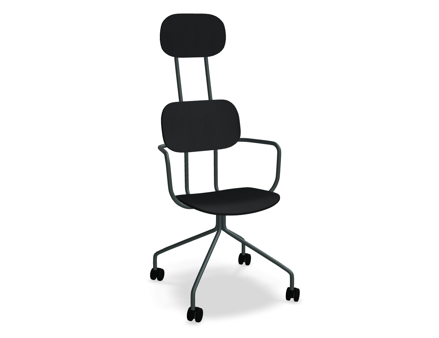 Office chair with headrest New School, designed by Studio Form US with Love, attracts attention with a modern form of double support. This version provides support for the whole back, and the headrest additionally increases the comfort of use. Thanks to the wheels and armrests, the New School chair is not only comfortable, but also functional, allowing for freedom of movement and a comfortable position, even during a longer sitting.