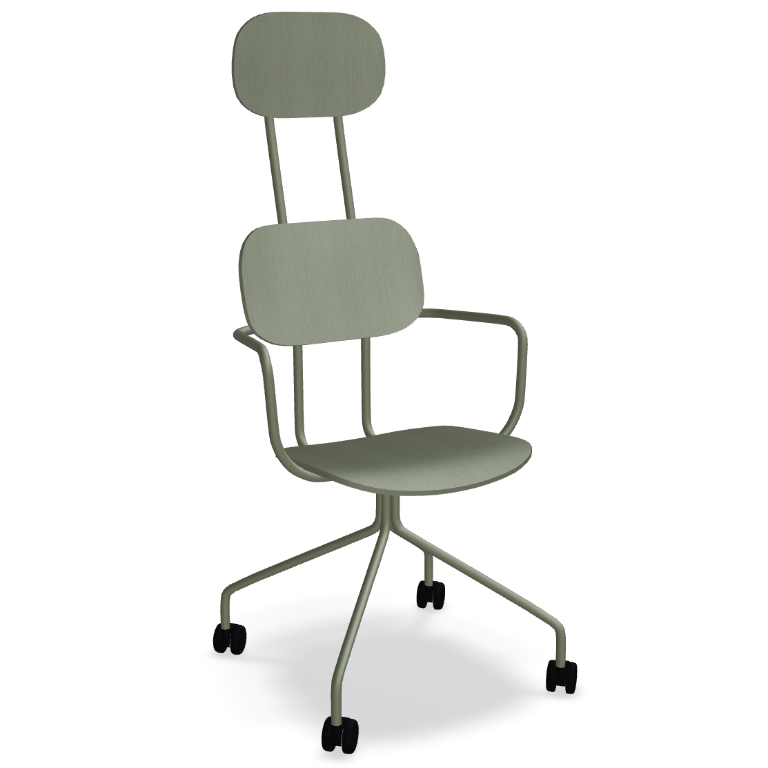 Office chair with headrest New School, designed by Studio Form US with Love, attracts attention with a modern form of double support. This version provides support for the whole back, and the headrest additionally increases the comfort of use. Thanks to the wheels and armrests, the New School chair is not only comfortable, but also functional, allowing for freedom of movement and a comfortable position, even during a longer sitting.