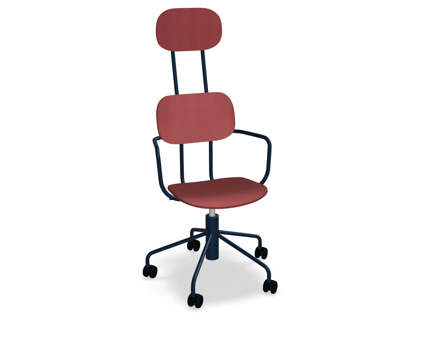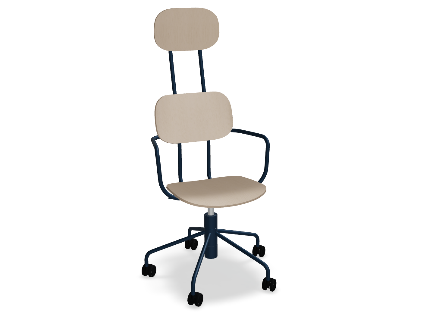 Office chair with headrest New school with adjustable height provides comfortable support for the user's whole back. Equipped with a cylinder and wheels, it enables full freedom of movement, which makes them an ideal choice for offices and educational facilities. A durable seat and plywood support are easy to care for, so they will work in places with intensive use.