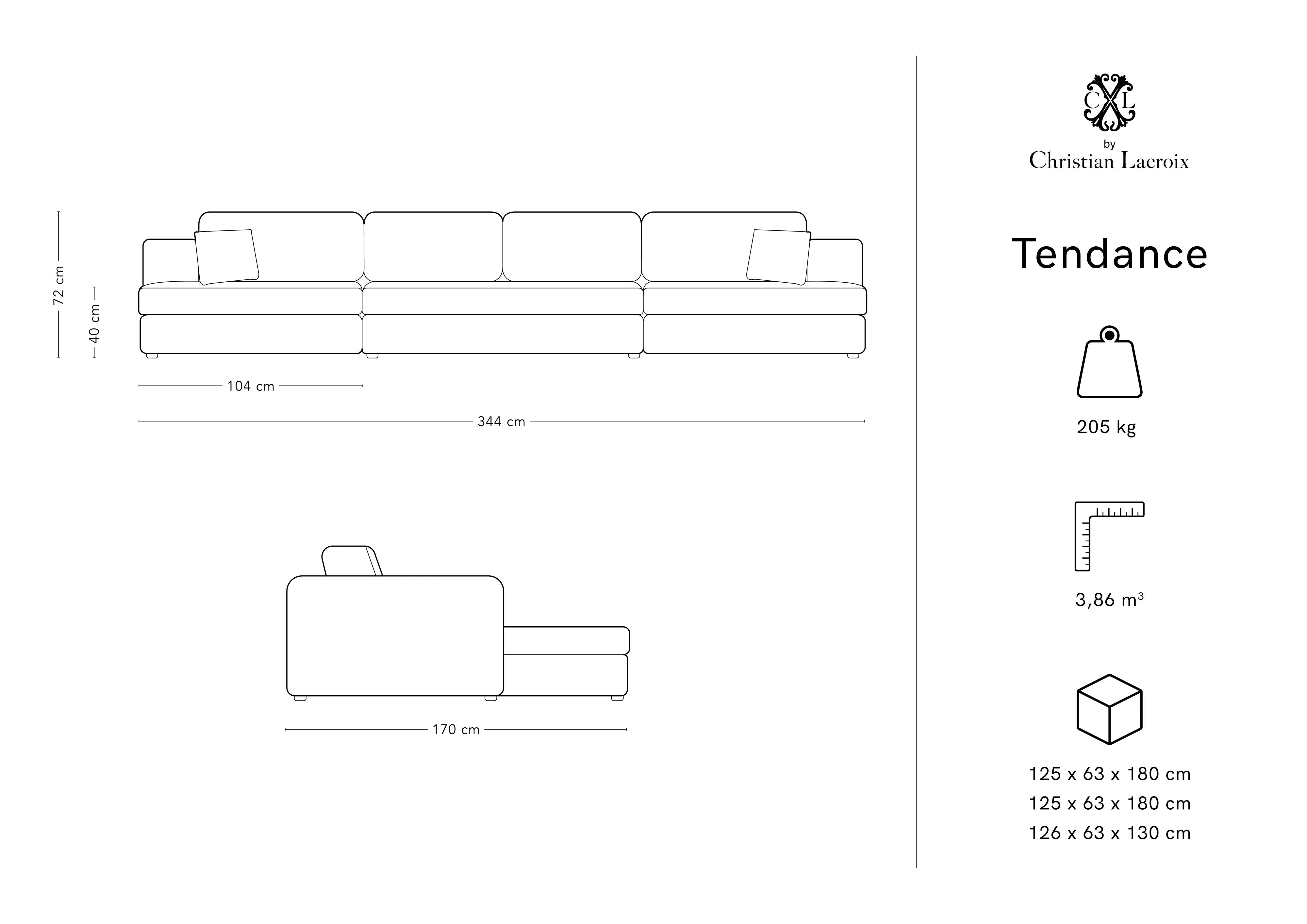 Panoramic Corner Sofa Tendance, signed by the French fashion house Christian Lacroix, is a beautiful blend of timeless elegance and modern design. The geometric and subtle shapes of this corner sofa will bring a touch of coziness to your interior. Its cubic design gives the whole piece a unique character.