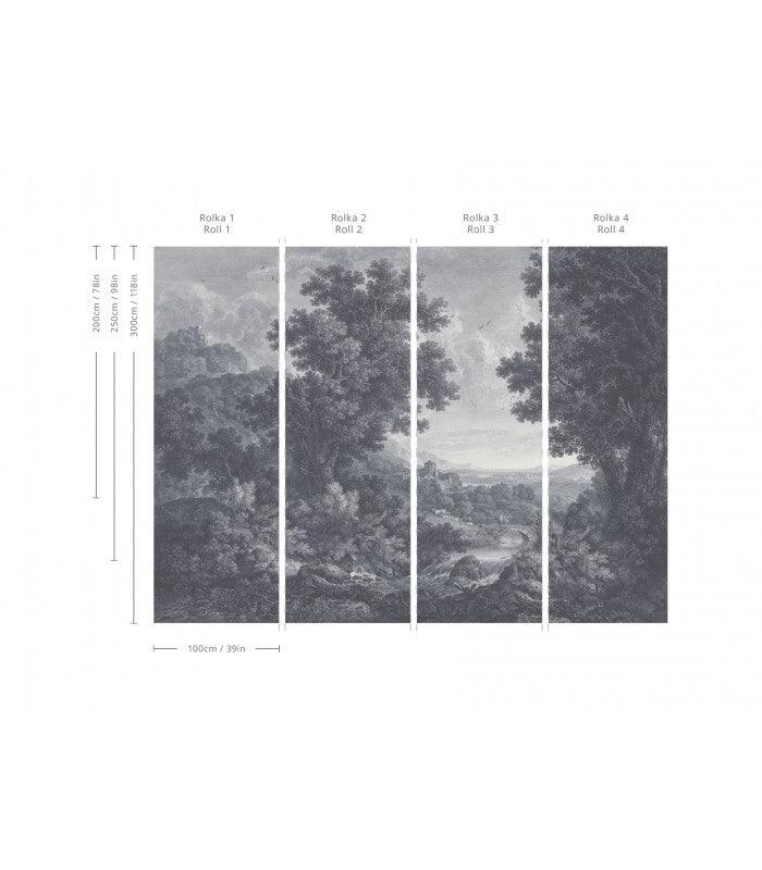 Non-woven wallpaper with the landscape PICTURESQUE VALLEY OF SERENITY blue-gray