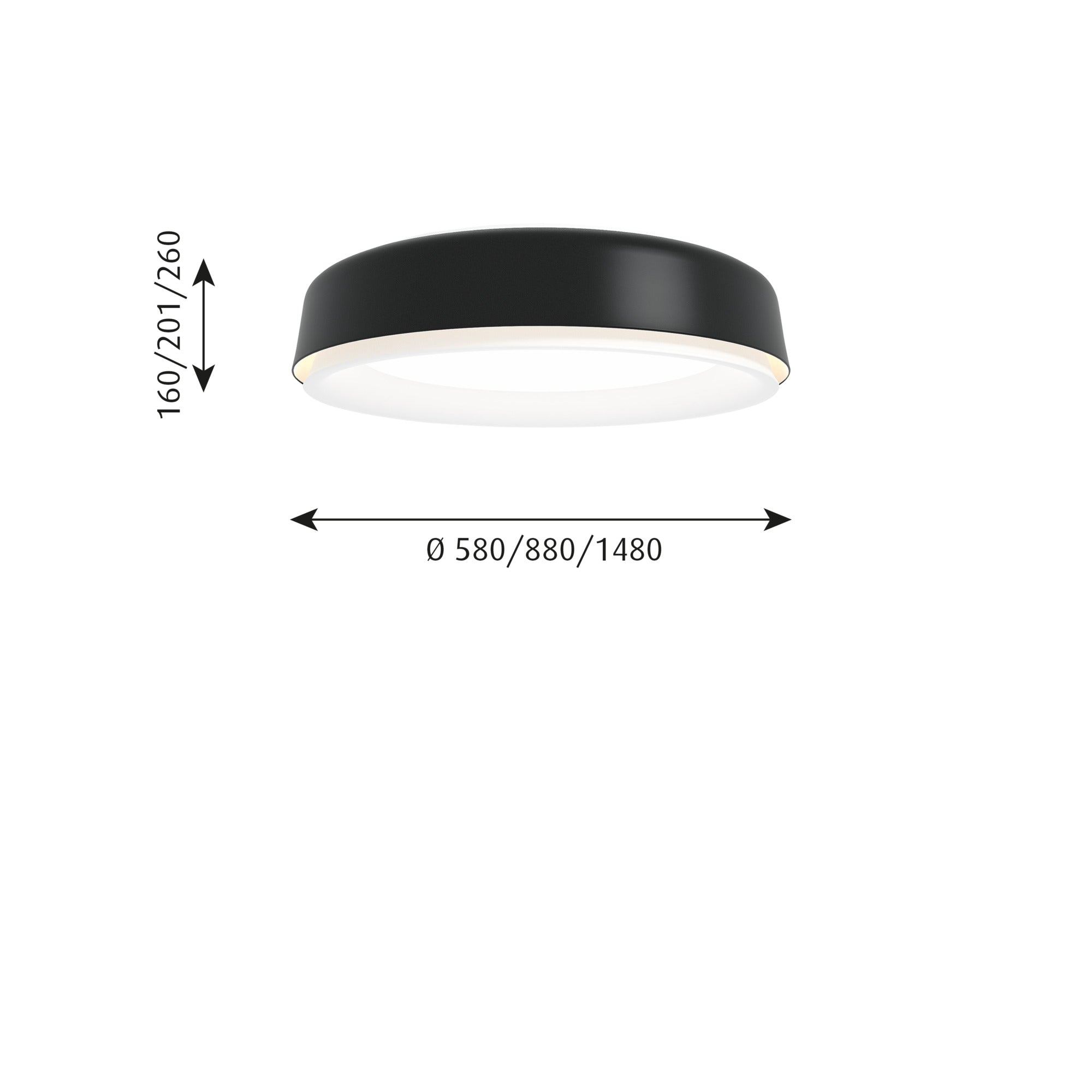 The variant with a diameter of Ø320 stands out with the possibility of installation on both the ceiling and the wall, allowing for the creation of cohesive, decorative light compositions. The other sizes (Ø580, Ø880, Ø1480) are intended for ceiling installation only.