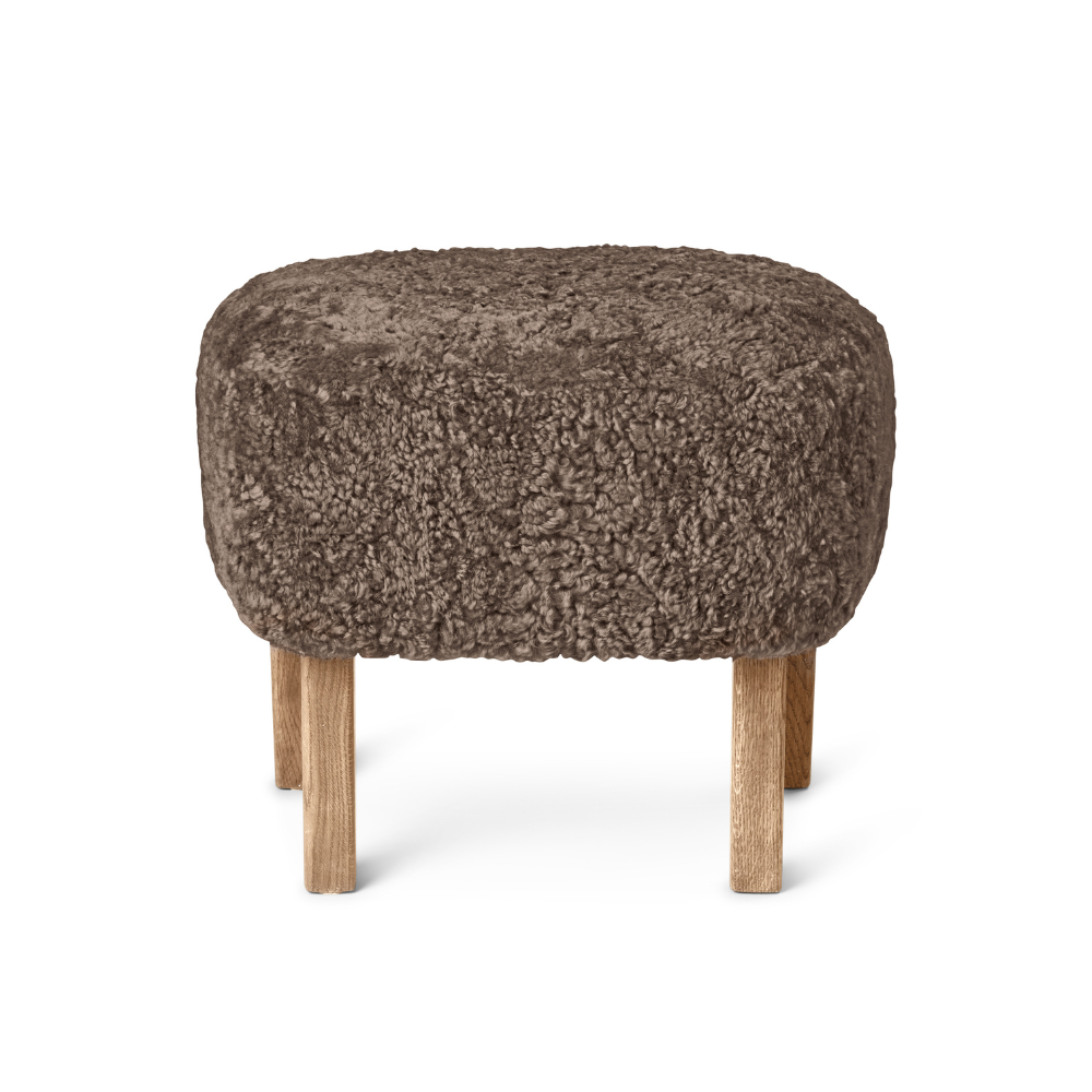 INGEBORG footstool brown sheepskin with oak base