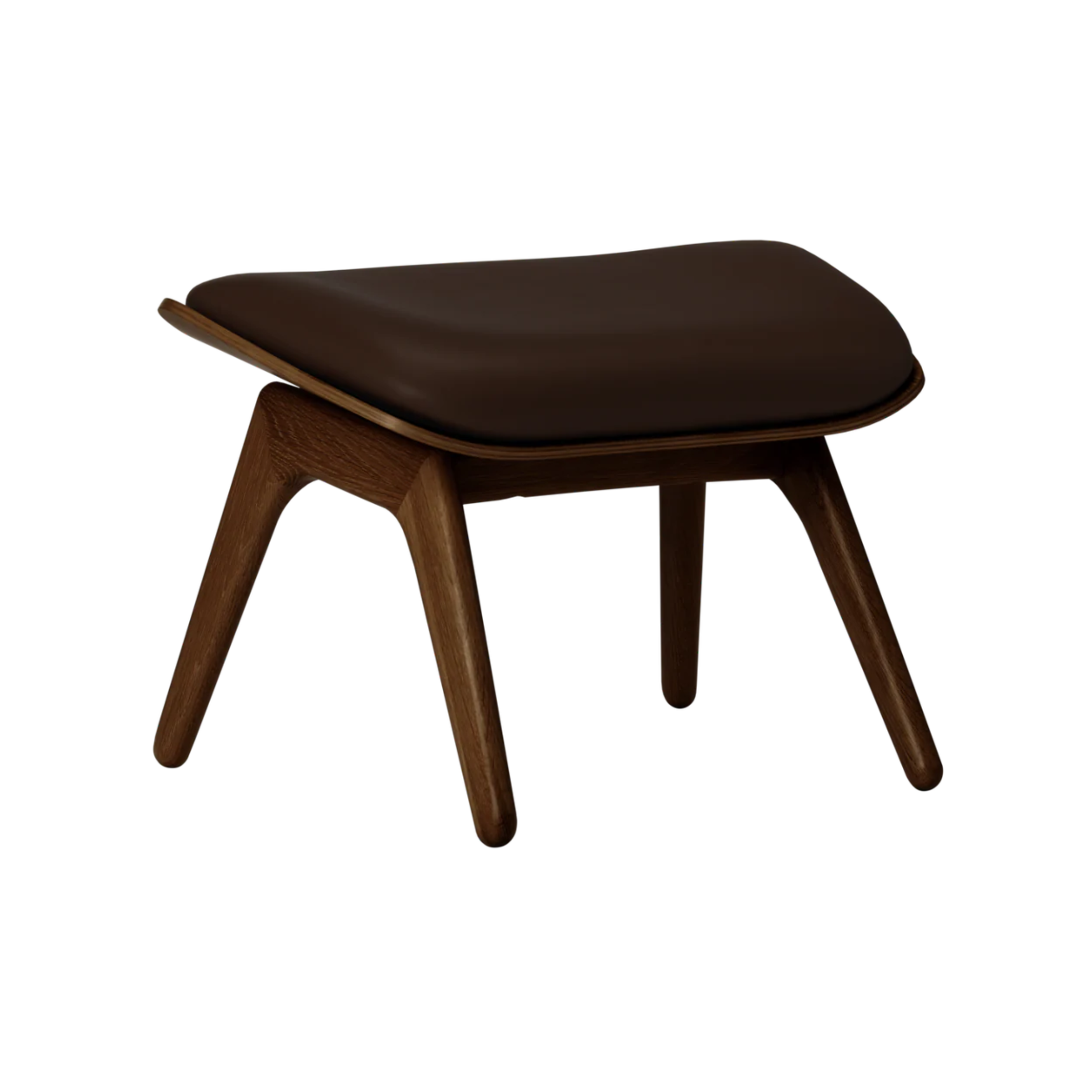 The shape of the seat cushion has been designed to slightly reveal the wooden shell of the ottoman, highlighting elegant details and craftsmanship. The leather upholstery adds a unique character and timeless class to the whole. The matte, warm-to-the-touch surface of the leather with its natural texture ages beautifully and over time acquires even greater charm.
