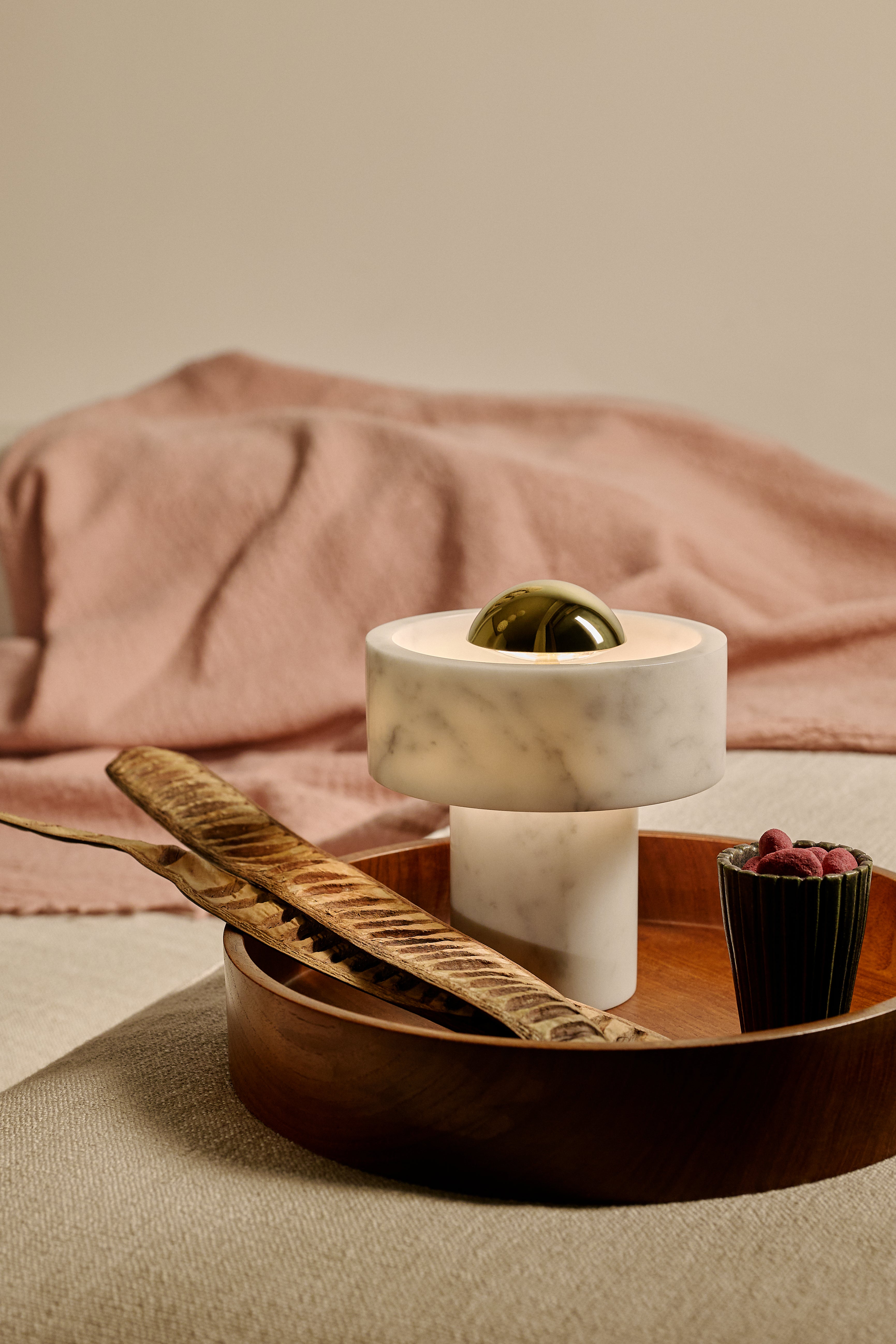 Portable lamp Stone is a unique product inspired by the material from which Taj Mahal was erected - a marble with a unique character. Each copy of the lamp is a unique work of nature, distinguished by solidity, weight and durability. Lamp Stone is characterized by a solid ring made of marble, which seems to lift around the light source, creating a delicate effect of a light halo.