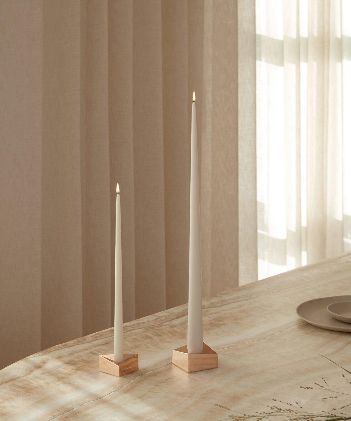 The candle holder is available in small and large versions in three different colors, allowing for the creation of beautiful color combinations with both traditional candles and taper candles.