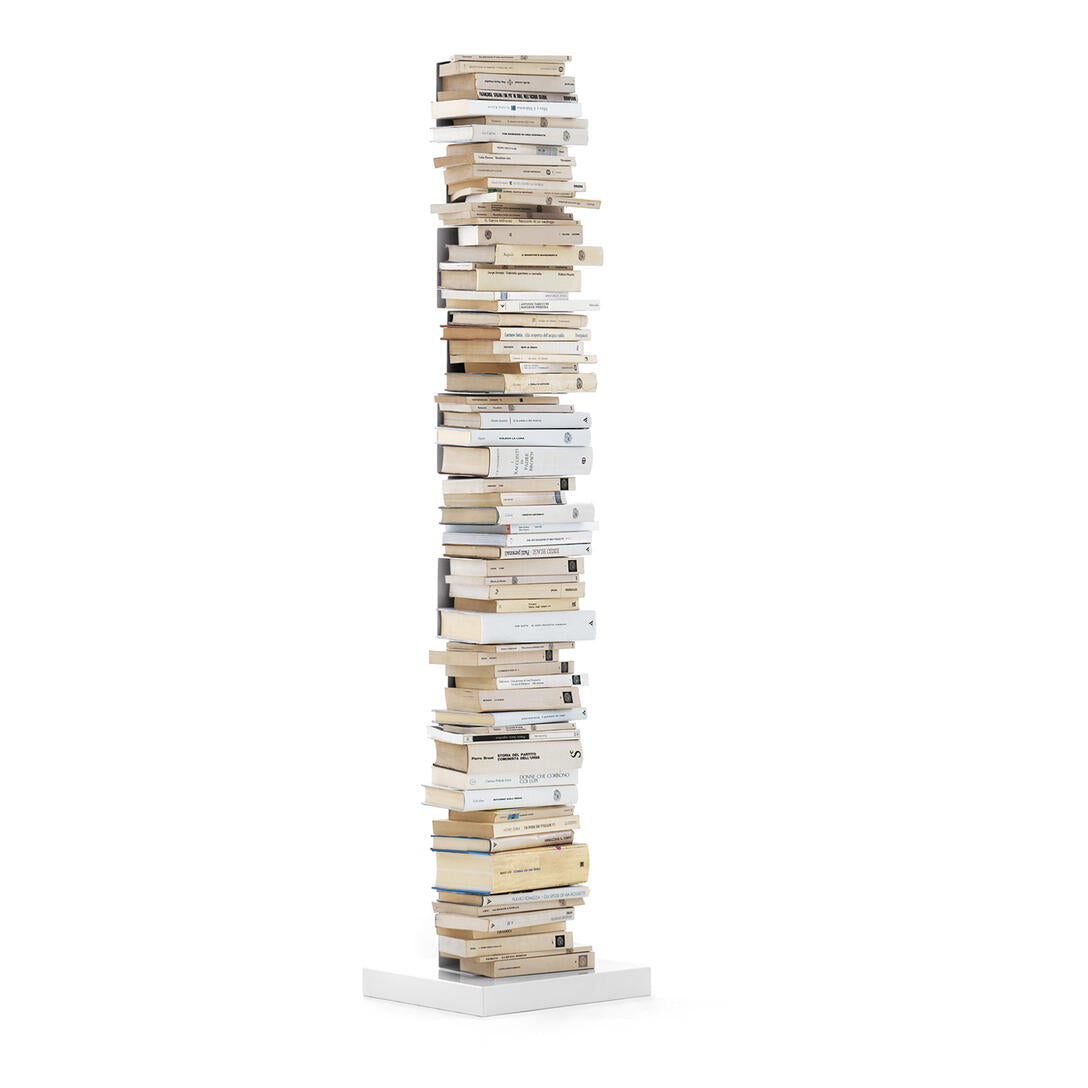 Shelf Original Ptolomeo, designed by Bruno Rainaldi and awarded the prestigious Compasso d’Oro in 2004, is an icon of contemporary design that revolutionizes the way we store books. This freestanding, vertical shelf appears to be a simple steel column to which thin shelves are attached. When filled with books, it disappears from view, showcasing only its contents, creating a unique effect – as if the books are floating in the air.