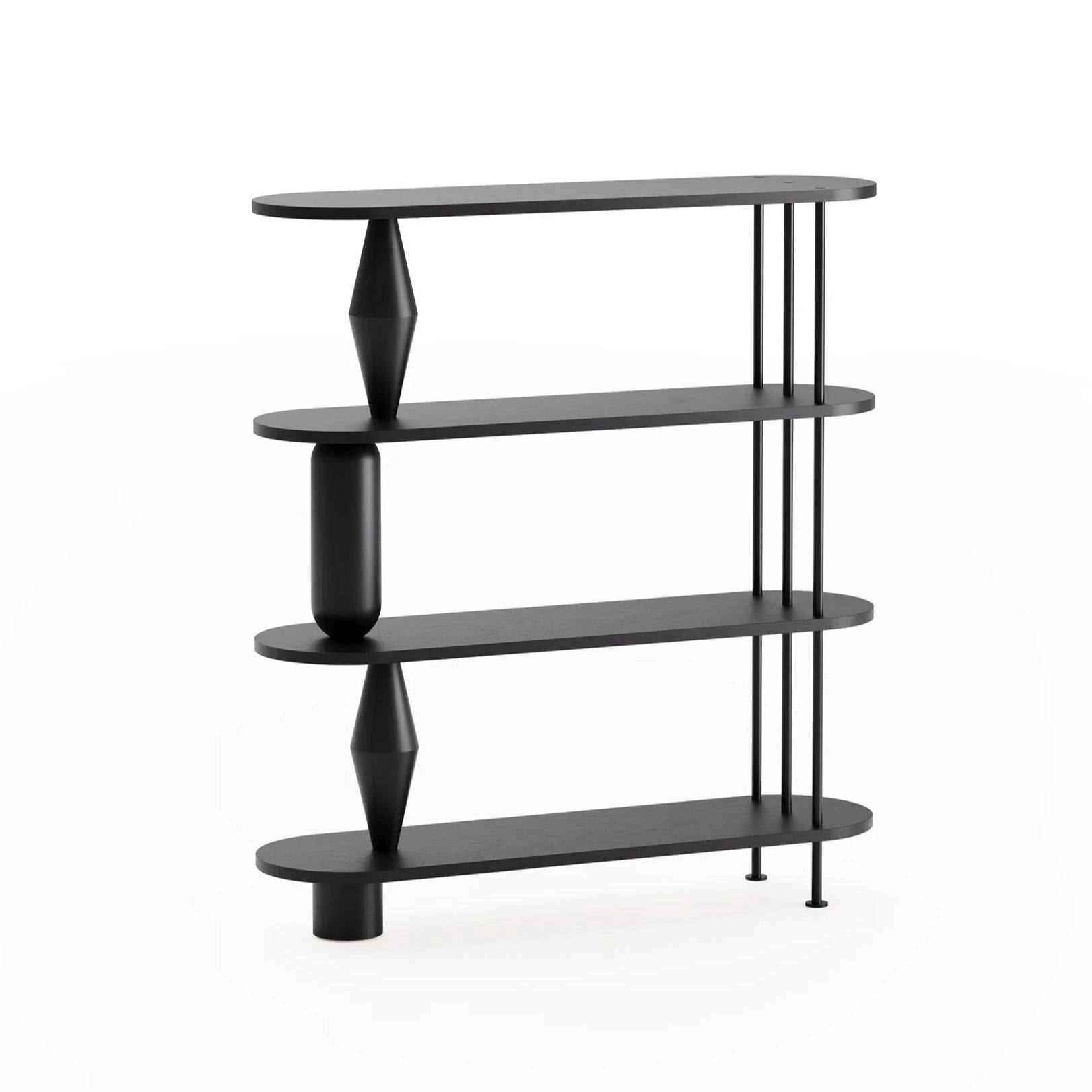 Shelf Vazoo is a modern interpretation of the shelving system, where aesthetics meet functionality. The turned, sculptural elements reminiscent of vases give the furniture a unique character and become its signaturemark. Thanks to the use of lightweight, openwork details made of powder-coated steel, the whole maintains a visual lightness, perfectly fitting into both minimalist and more eclectic interiors.