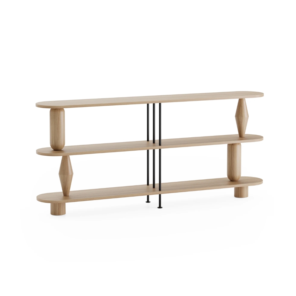 Shelf Vazoo Duo is a modern interpretation of the shelving system, where aesthetics meet functionality. The turned, sculptural elements reminiscent of vases give the furniture a unique character and become its hallmark. Thanks to the use of lightweight, openwork details made of powder-coated steel, the overall design maintains a visual lightness, perfectly fitting into both minimalist and more eclectic interiors.