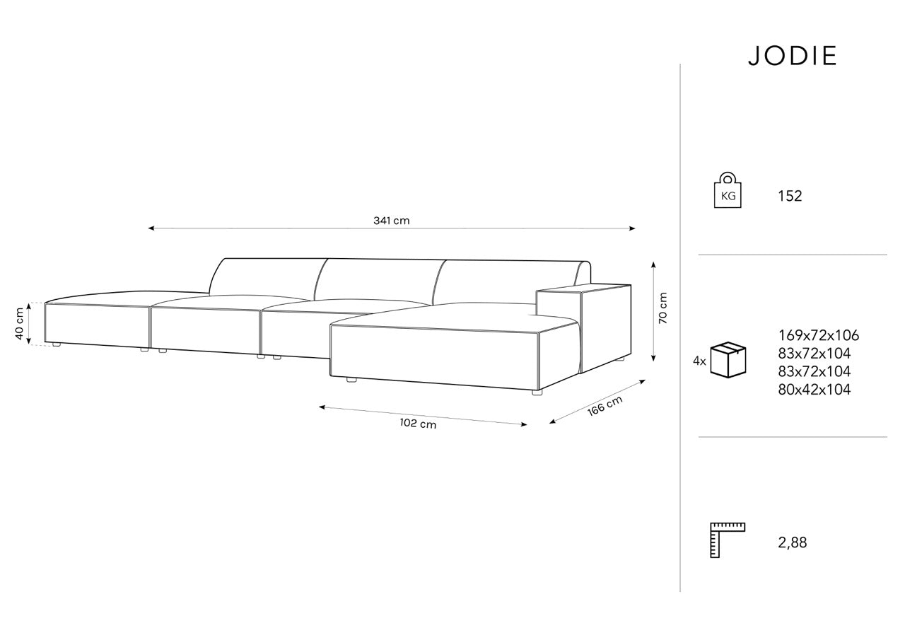 Jodie is an ideal solution for families or groups of friends who want to spend time together in a comfortable and functional space. The corner sofa features spacious seats and comfortable backs, ensuring user comfort. Additionally, its modern design will fit perfectly into any contemporary interior.