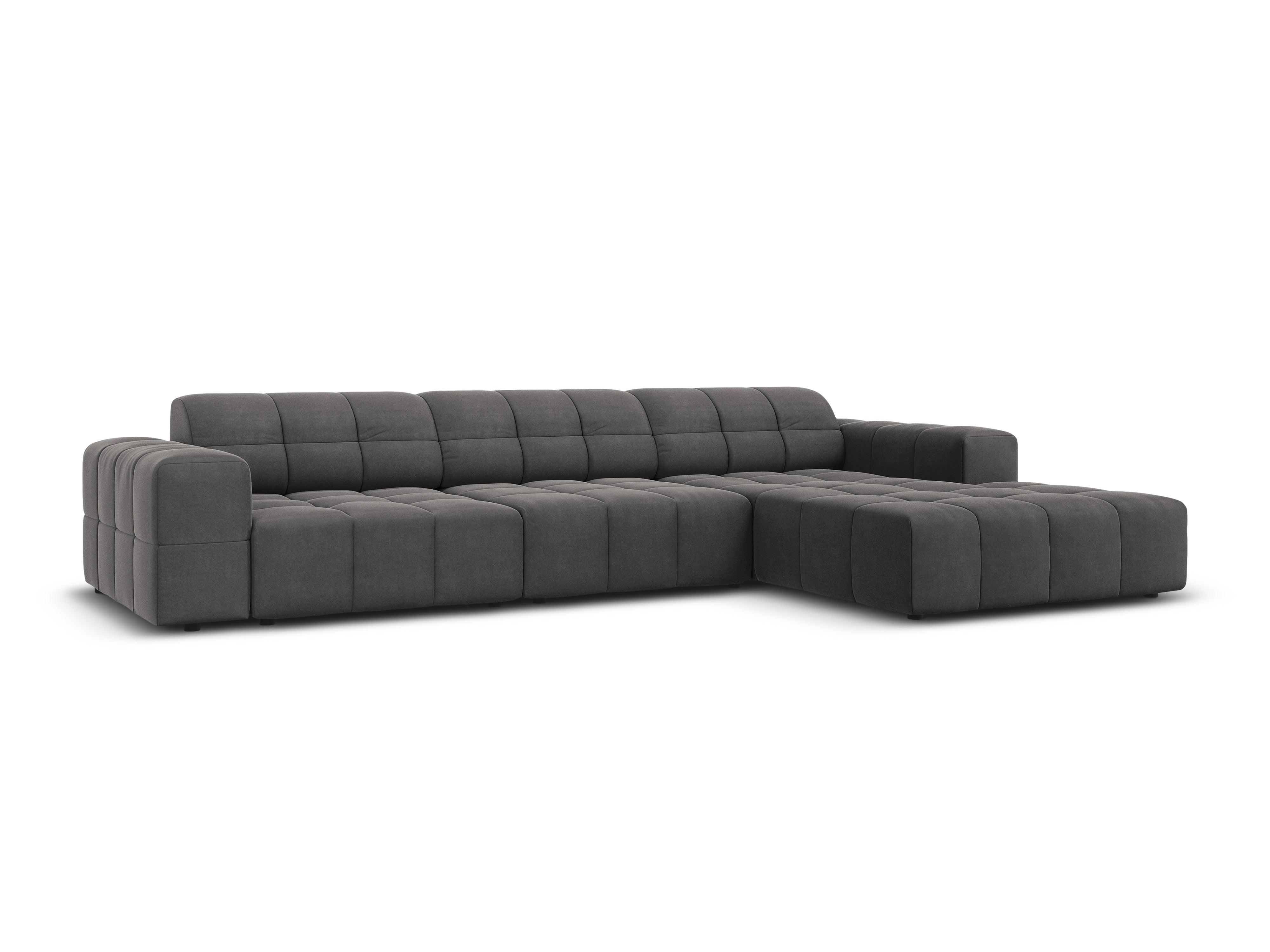 Corner sofa for four people Chicago features an exceptional design, where gently tufted seats and numerous stitching on the backs give the whole a refined appearance. The low, expansive shape exudes extraordinary elegance, perfectly highlighting the style of the living room. The resilient, deep seats with abundant filling guarantee not only comfort but also complete relaxation after a long day.