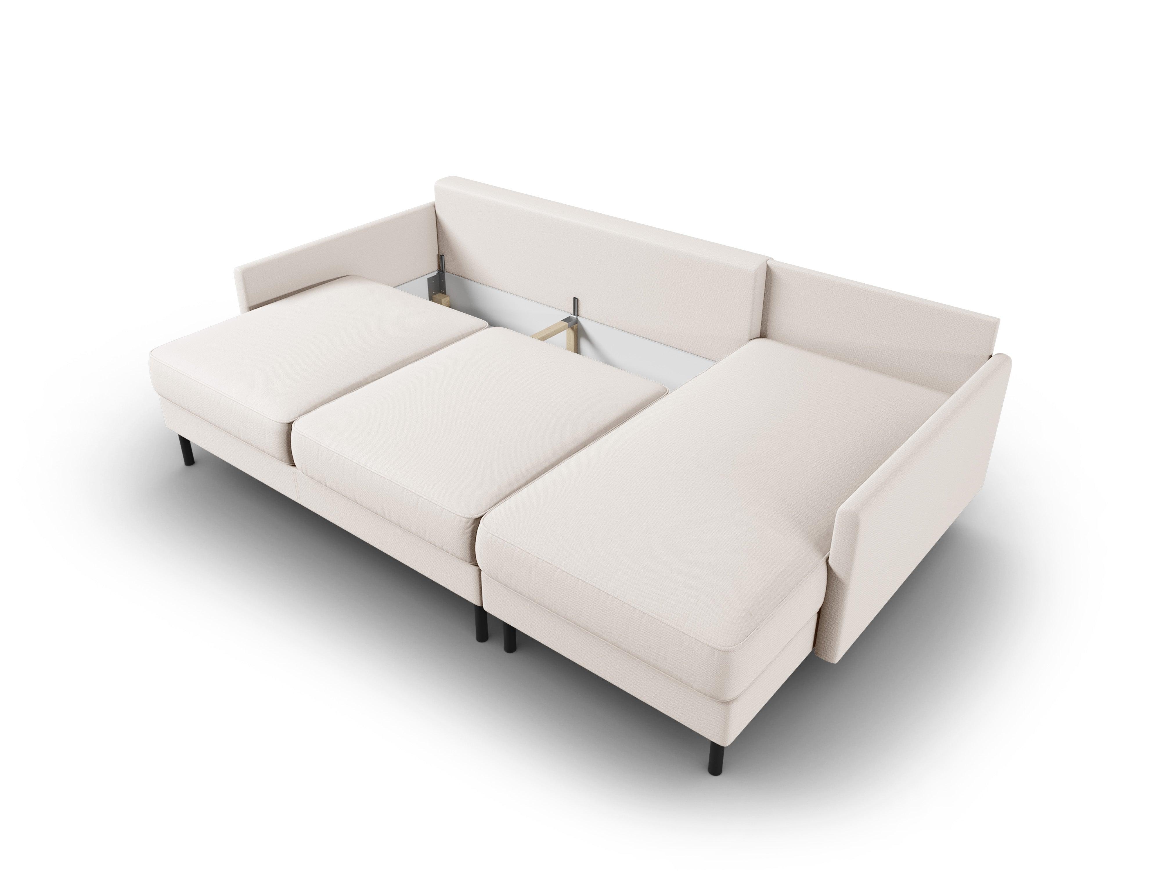 Corner Sofa Scott is a five-seater sofa bed, perfect for families and those looking for a comfortable and stylish piece of furniture for their home. The corner sofa is available in elegant colors and features black metal legs that add a modern touch. Customers have the option to choose the side of the sofa bed, allowing them to customize it to their needs and room layout.