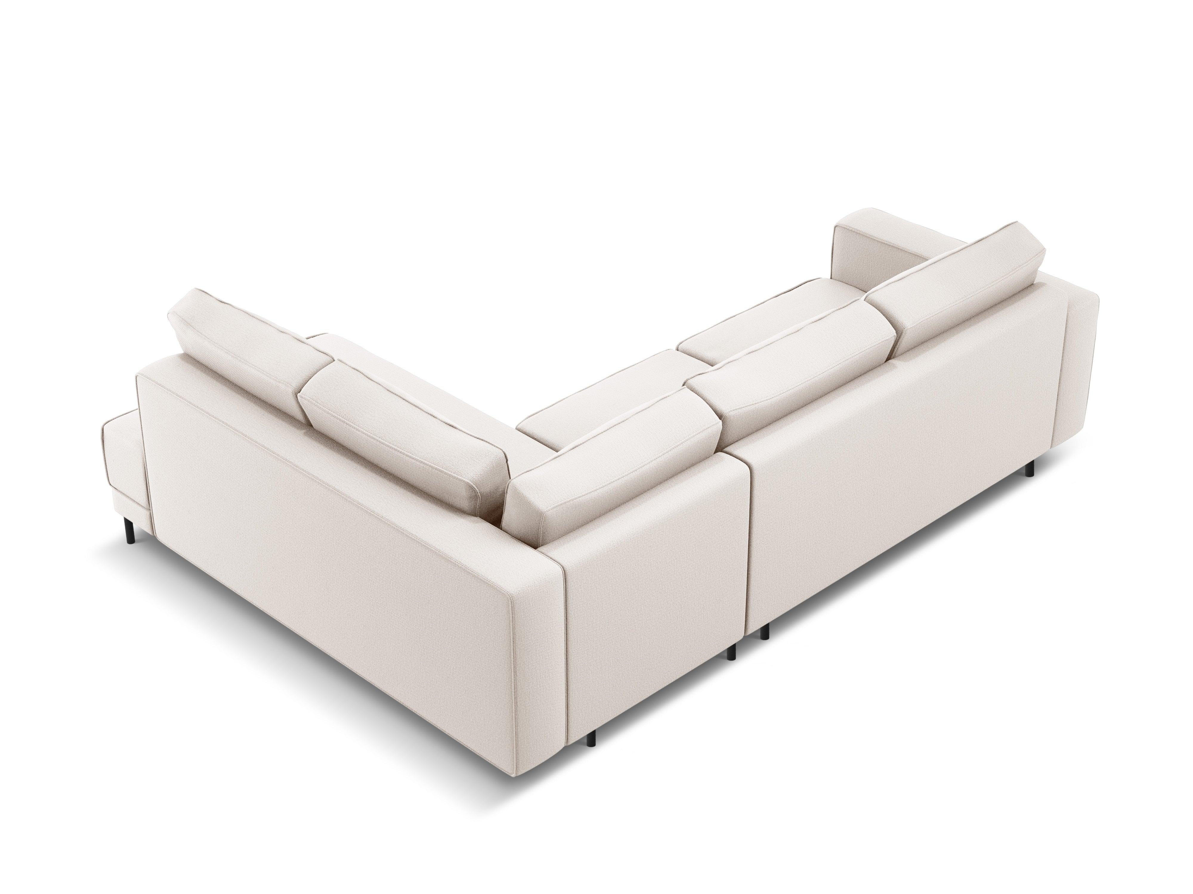 Sturdy legs in black perfectly complement the classic silhouette of the furniture. The upholstery made of structural fabric with a visible, flat weave of fibers not only looks beautiful but is also pleasant to the touch and resistant to abrasion. If you are looking for an impressive and practical corner sofa that will never go out of style, then Caro will be the perfect solution!