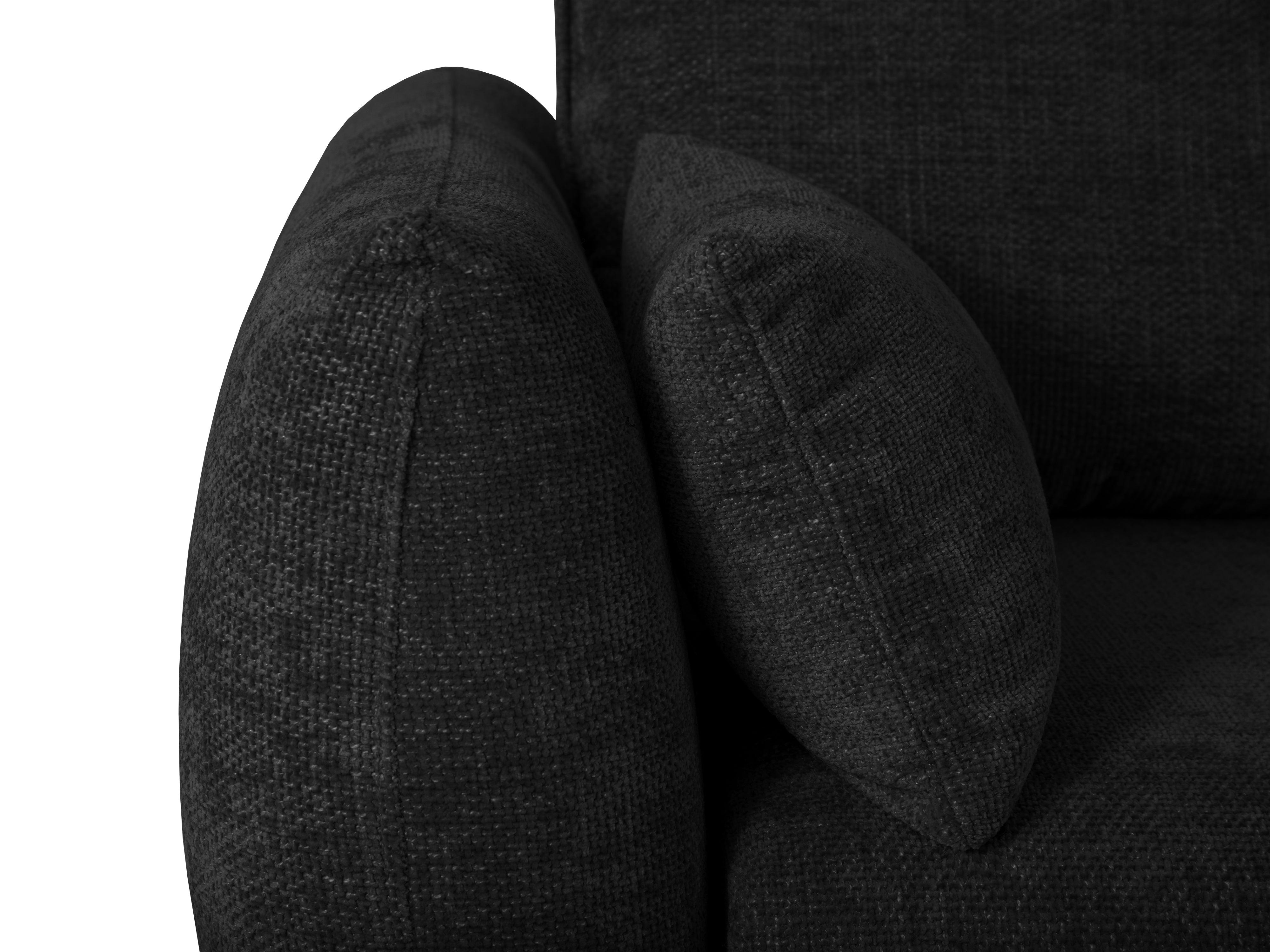 Corner sofa bed Matera radiates tranquility with its rounded forms that not only embrace the body but also conceal a comfortable bed for sleeping. The high quality of craftsmanship and the use of chenille fabric highlight its exclusive character while providing unmatched touch comfort. The delicate texture of the chenille material gives the Matera corner sofa a subtle yet distinctive appearance, making it not only a place for relaxation but also a practical and stylish decorative element. The fabric is very durable, fire-resistant, and minor stains are hardly visible on it.