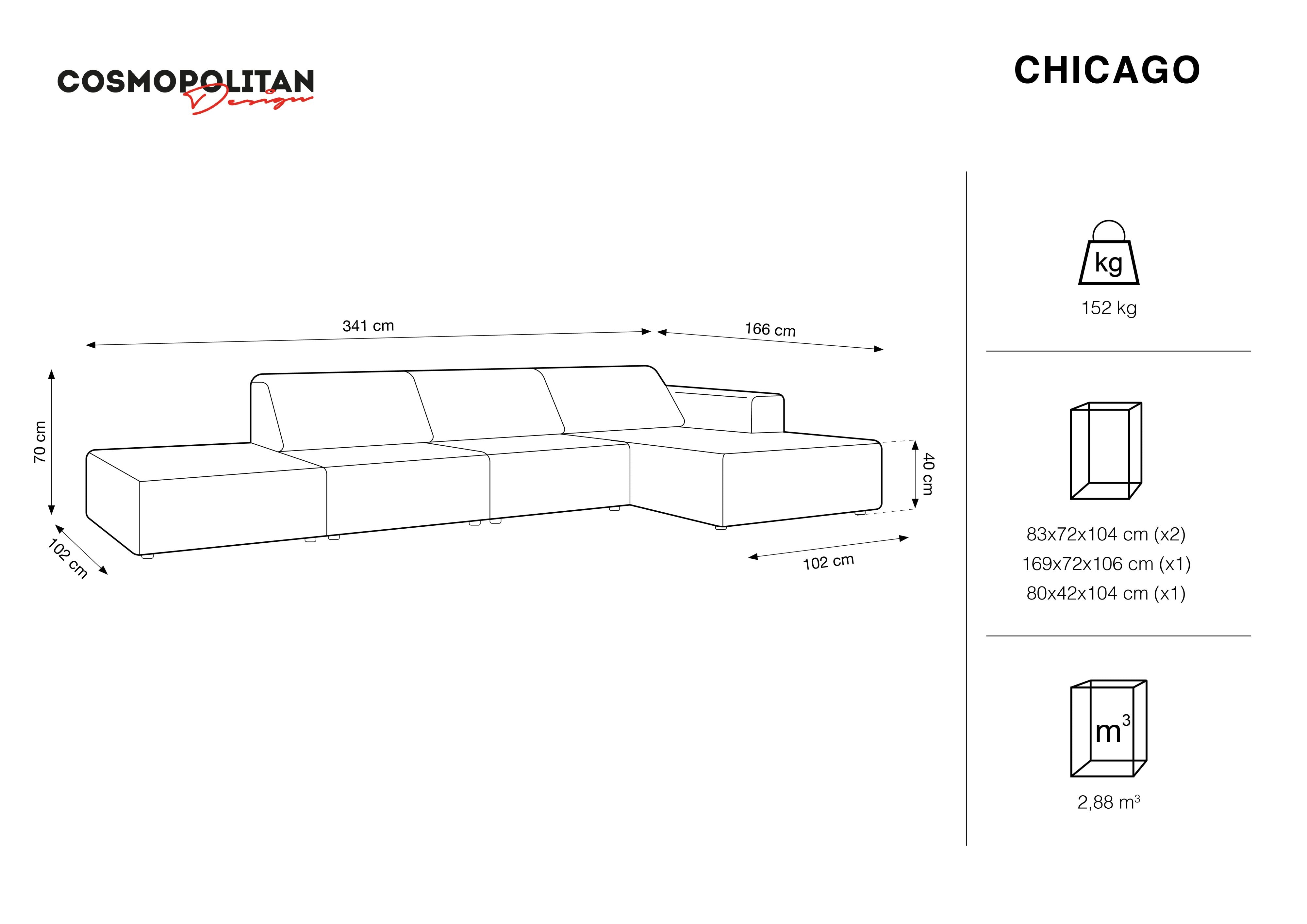The corner sofa for five people Chicago features an exceptional design, where gently tufted seats and numerous seams on the backs give the whole a refined appearance. The low, expansive shape exudes extraordinary elegance, perfectly highlighting the style of the living room. The resilient, deep seats with abundant filling guarantee not only comfort but also complete relaxation after a long day.