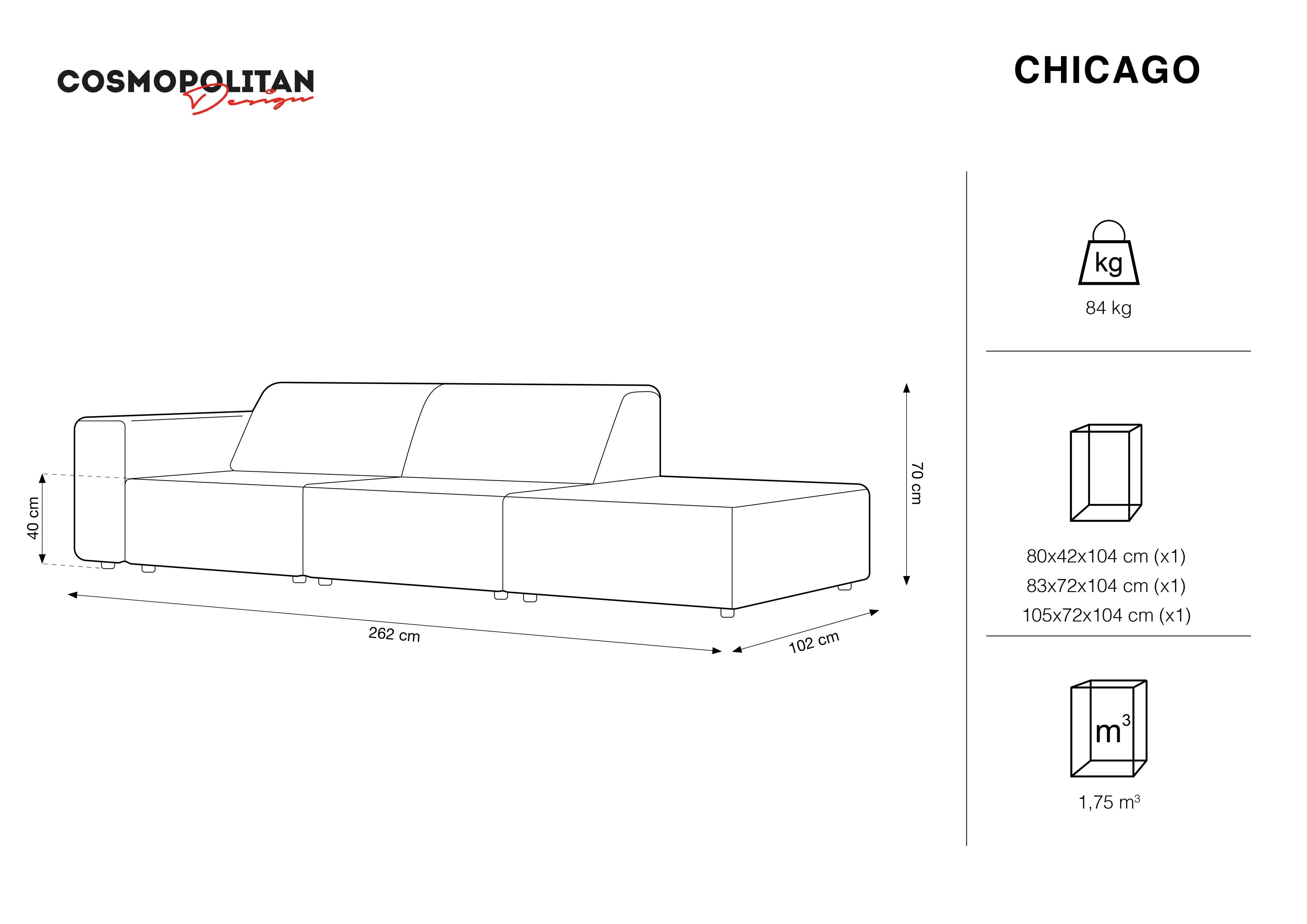 Sofa aksamitna prawostronna 3-osobowa CHICAGO oliwkowy Cosmopolitan Design    Eye on Design