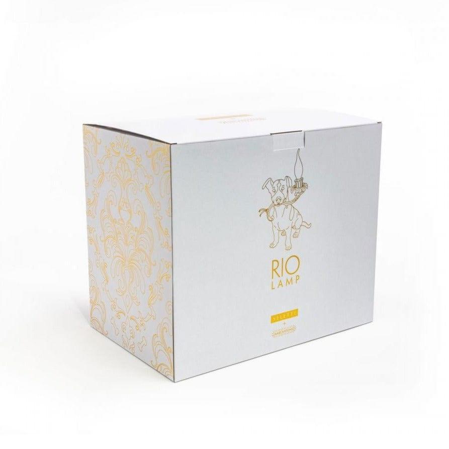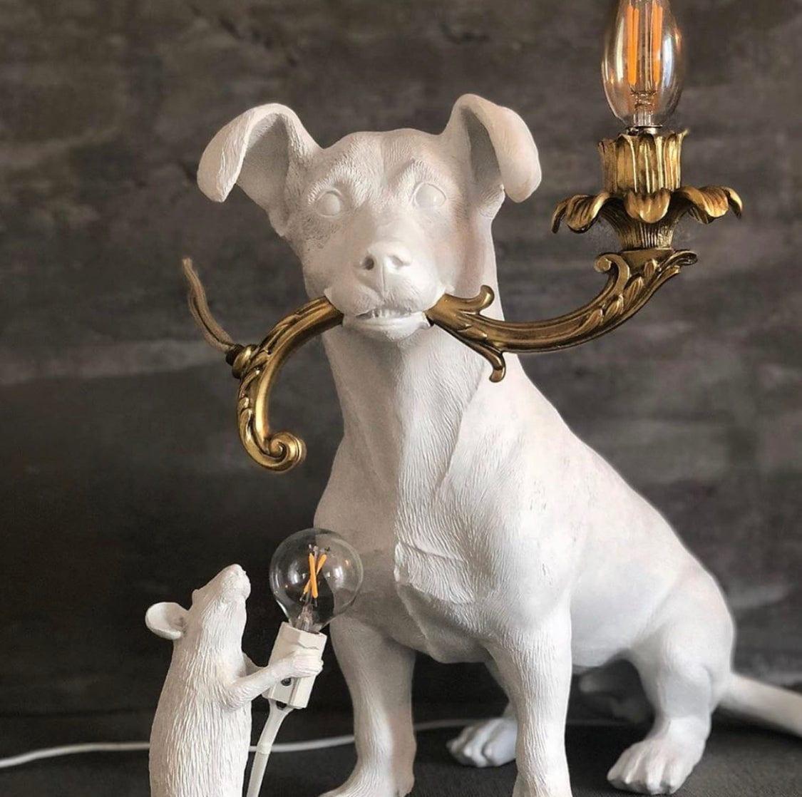 Yes, you are not wrong, so Rio was created on the basis of a dog that really exists. Thanks to this, all details in the body and facial expressions seem even more real. The white sculpture supplemented with gold inserts combine perfectly with each other, giving the impression of a perfect whole. Unique lamp It is great for both at home of animal lovers and in people who value unconventional design.