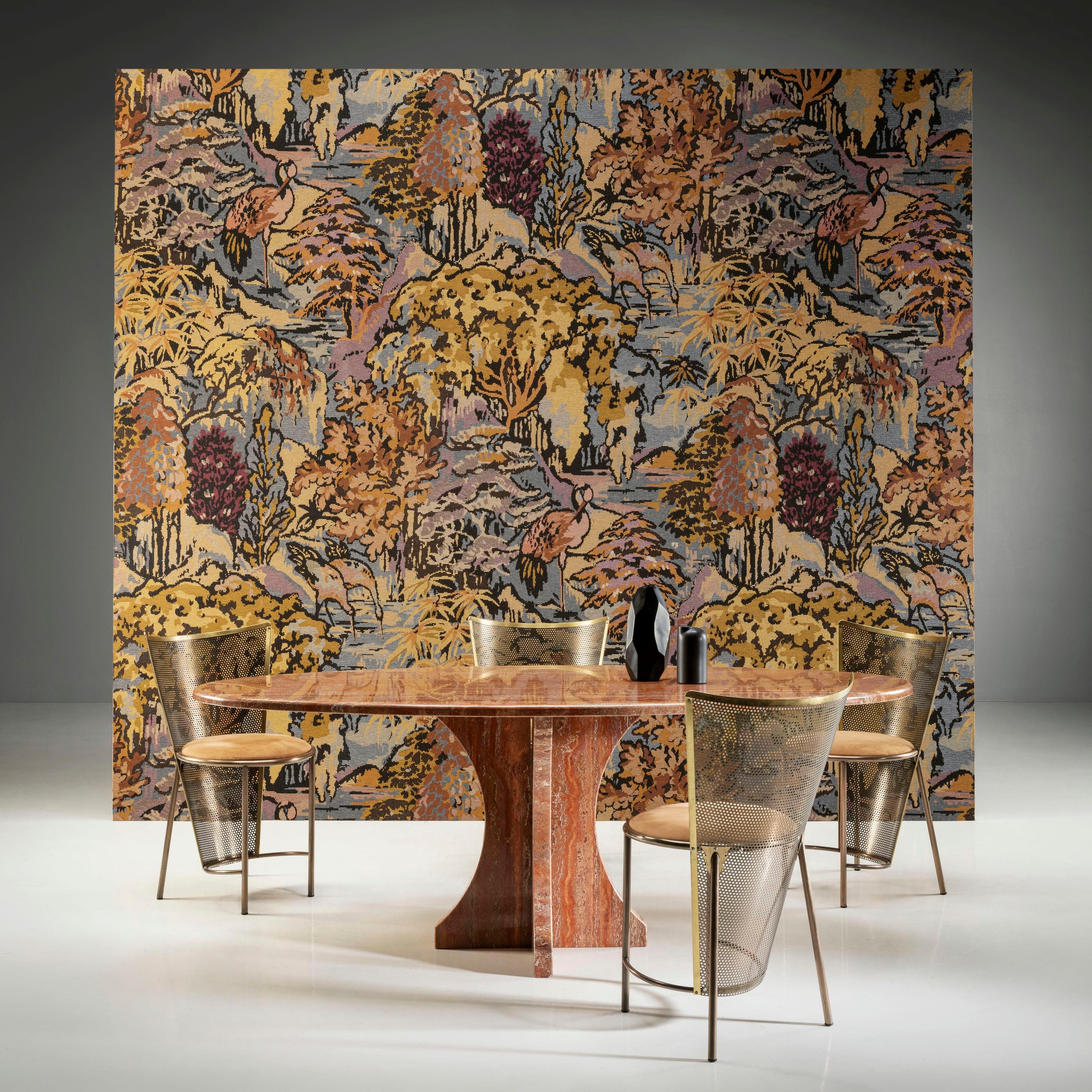 Inspired by classic tapestries, this one woven jacquard wallpaper It presents the lush bank of the river with a Japanese crane emerging from vegetation. This unique wallpaper Symbolizes happiness and longevity in Japan. The drawing is intentionally pixed, referring to the optimism of the 1950s in this country.