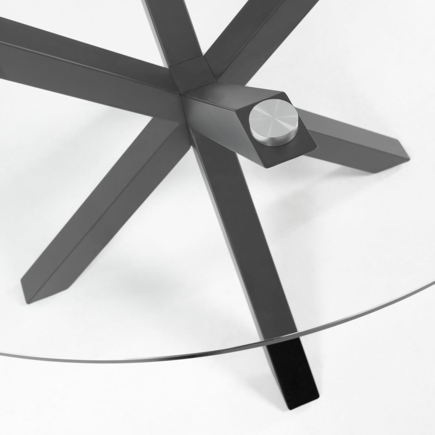 Its glass, round top not only adds lightness to the entire structure but also opens up the space, giving the room a feeling of spaciousness. The use of high-quality glass makes the table with a black base easy to keep clean, which is essential for everyday use.