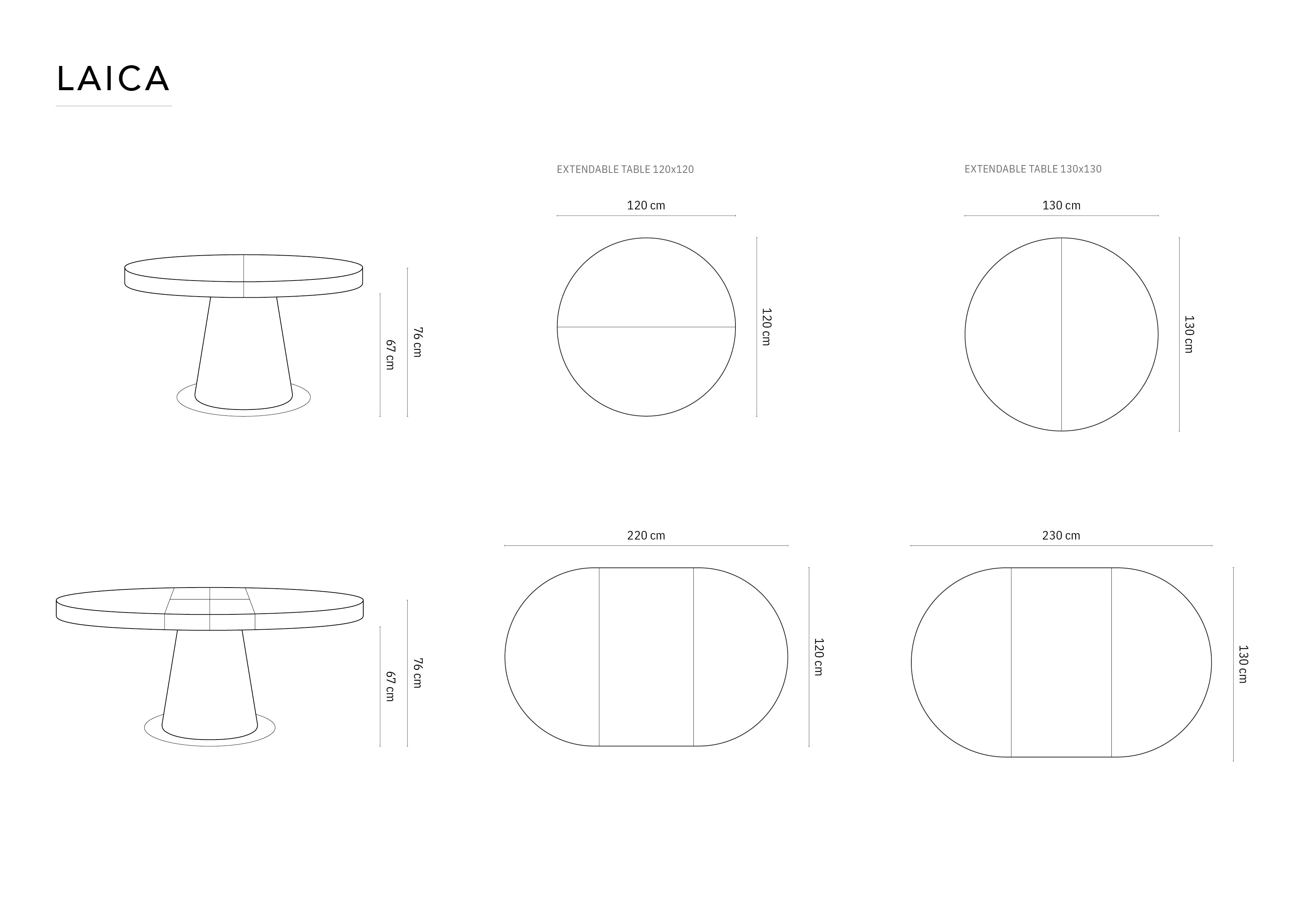 Fold -out table Laica is a unique furniture for the dining room. Its round countertop can be easily folded, creating the shape of an ellipse. The support with one solid leg, reminiscent of a powerful column, adds a modern character to the whole.